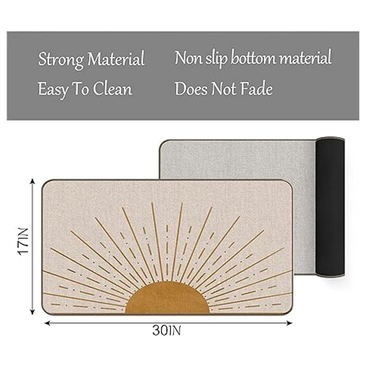 Material: poliéster duradero y respaldo de goma antideslizante.