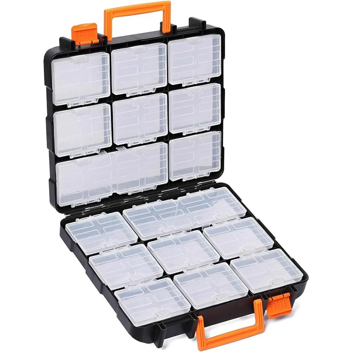 MIXPOWER 16 secciones desmontables de 13.5 pulgadas, caja de herramientas extraíble, doble cara, excelente caja para almacenar tornillos, tuercas, pernos y herramientas pequeñas