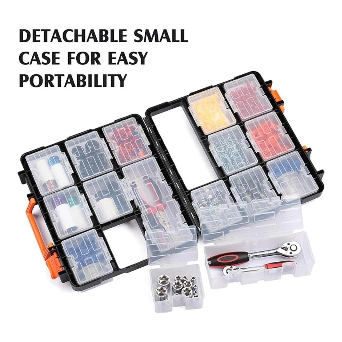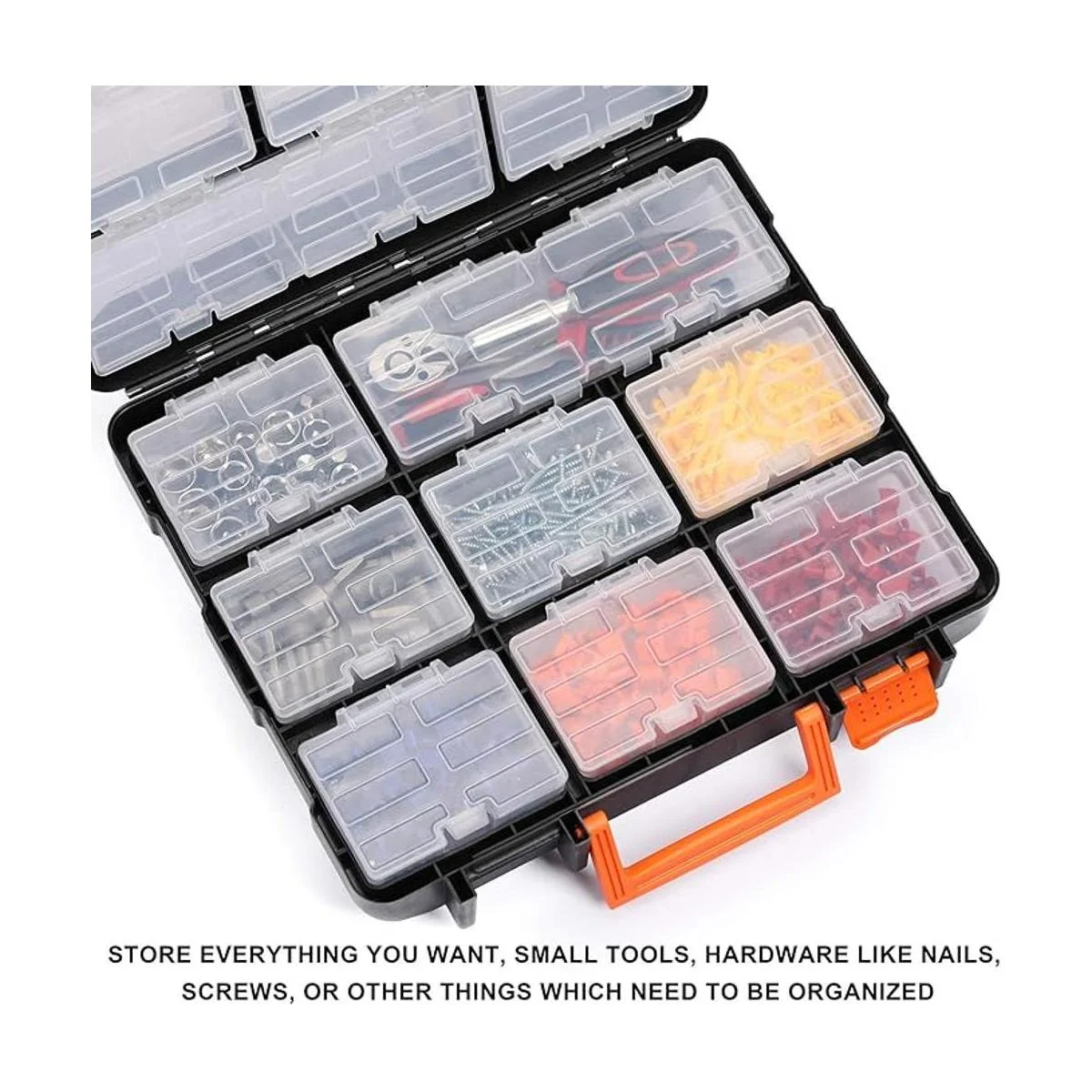 Diseño de doble cara: la caja tiene un diseño de doble cara, perfecto para varias piezas, sujetadores, tornillos, tuercas, pernos, conectores eléctricos, accesorios para el cabello, cuentas, llave inglesa y muchos otros artículos.