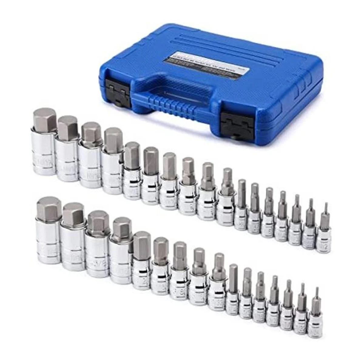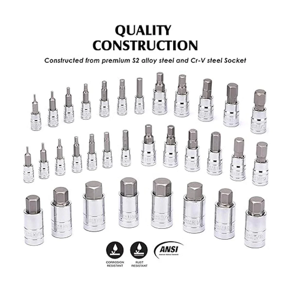 MIXPOWER Juego de 33 piezas de llaves hexagonales maestras, acero S2, SAE y métrico, broca Allen, 564 a 34 pulgadas, kit de herramientas de enchufe de 0.079 in a 0.748 in