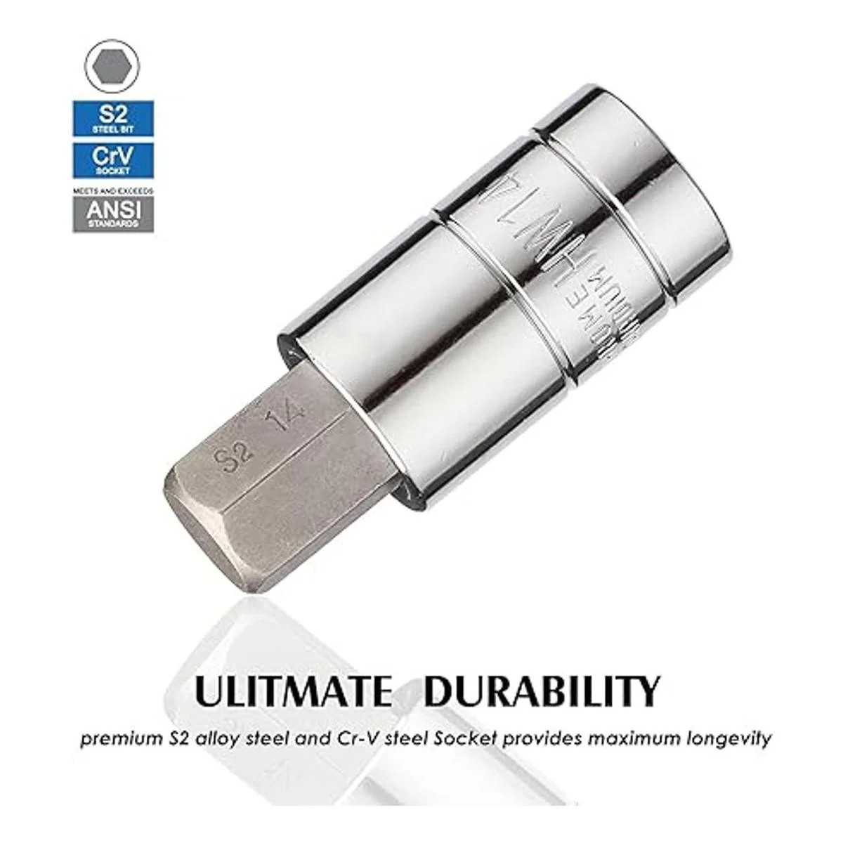 Material S2: fabricado con acero S2 y acero al cromo vanadio CRV para una resistencia y longevidad superiores, los enchufes cuentan con un acabado cromado y las brocas están hechas de brocas de acero S2 para resistir el óxido y la corrosión