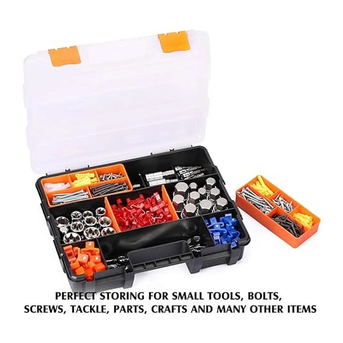Gran capacidad de almacenamiento: el baúl de herramientas es adecuado para almacenar pequeñas herramientas, pernos, tornillos, aparejos, piezas, manualidades y muchos otros artículos.