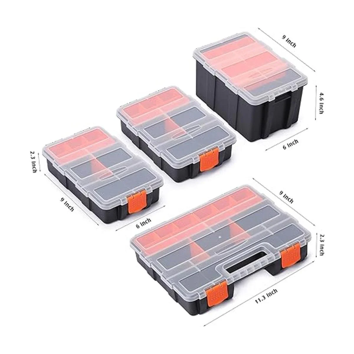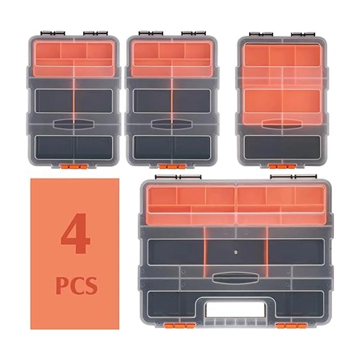 MIXPOWER Juego de 4 piezas de herramientas y organizadores de piezas, almacenamiento versátil y duradero, separadores de plástico extraíbles personalizables, almacenamiento y transporte, negronaranja