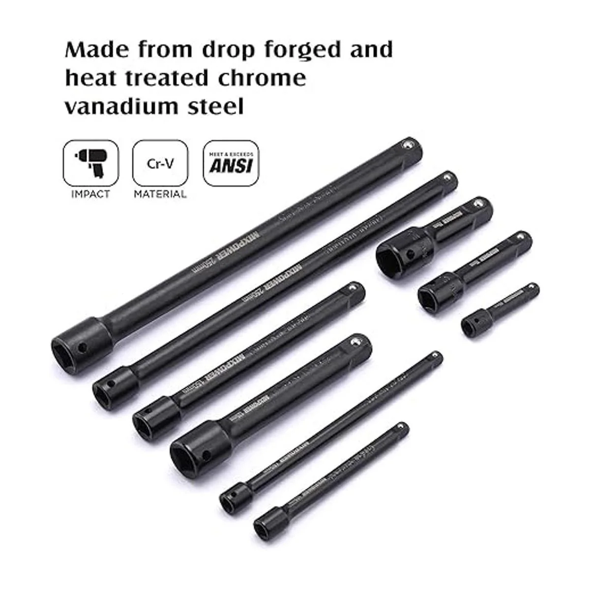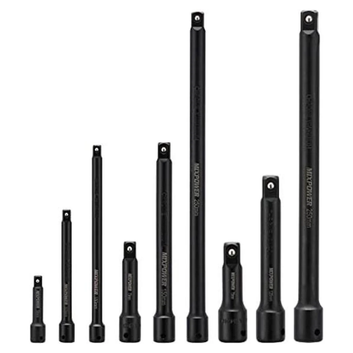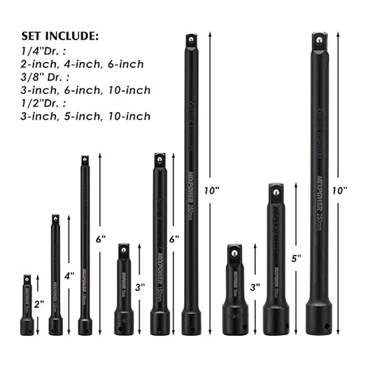 MIXPOWER Juego de barras de extensión de 9 piezas, extensión de enchufe de accionamiento de 14 pulgadas, 38 pulgadas y 12 pulgadas, acero al cromo vanadio de alta calidad con acabado de fosfato negro, diseñado para impulsores de impacto