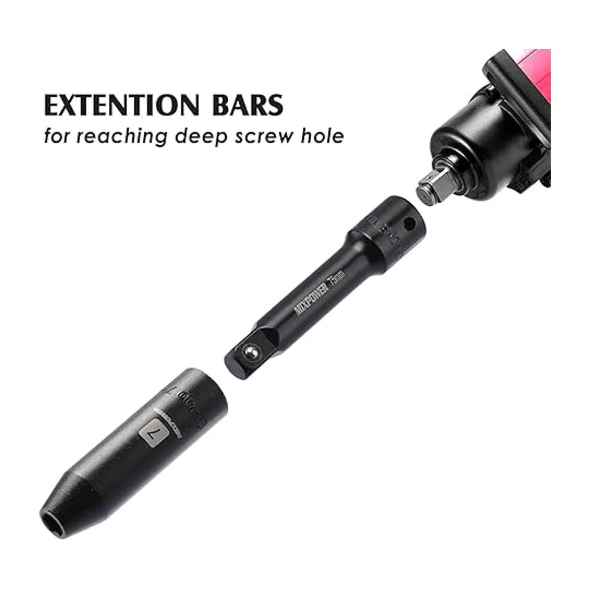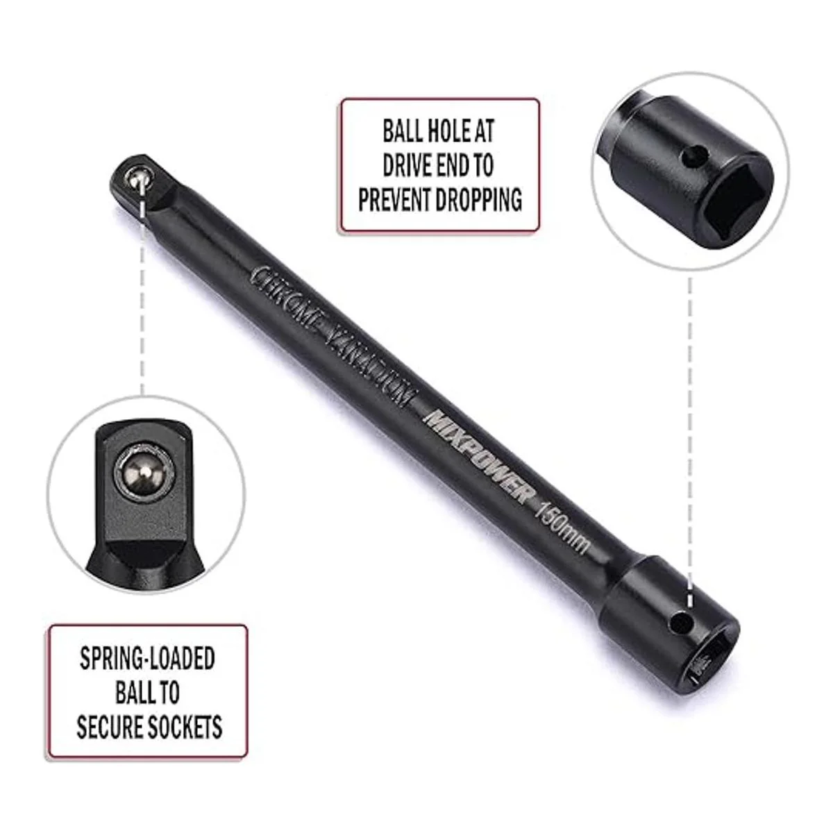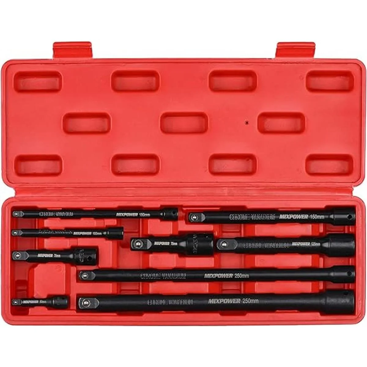 MIXPOWER Juego de barras de extensión de 9 piezas, extensión de enchufe de accionamiento de 14 pulgadas, 38 pulgadas y 12 pulgadas, acero al cromo vanadio de alta calidad con acabado de fosfato negro, diseñado para impulsores de impacto