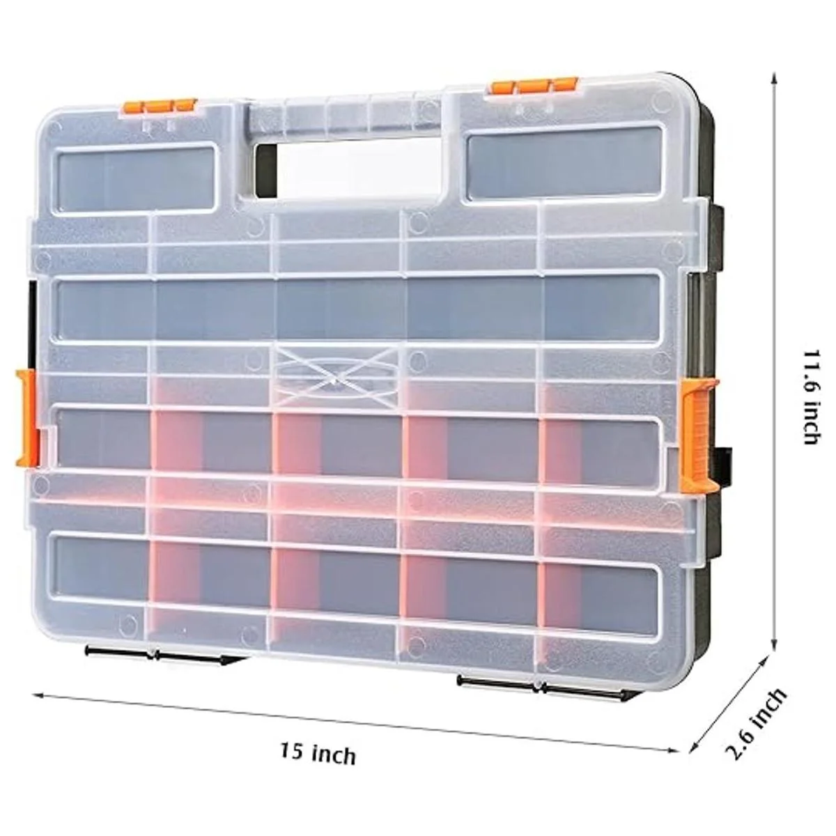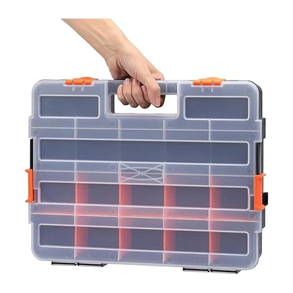 Almacenamiento de alta capacidad: la caja de herramientas es adecuada para almacenar varias piezas, sujetadores, tornillos, tuercas, pernos, conectores eléctricos, accesorios para el cabello, cuentas, aparejos de pesca y otros artículos de construcción más pequeños.