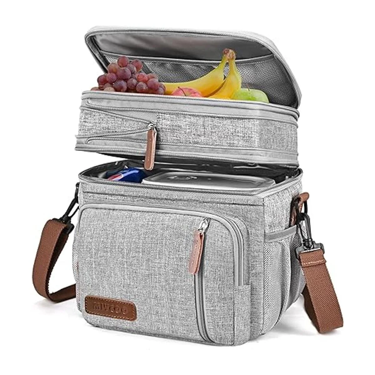 Portátil y práctica: la lonchera reutilizable tiene un asa reforzada en la parte superior y una correa de hombro extraíble y ajustable para proporcionarte más opciones de transporte