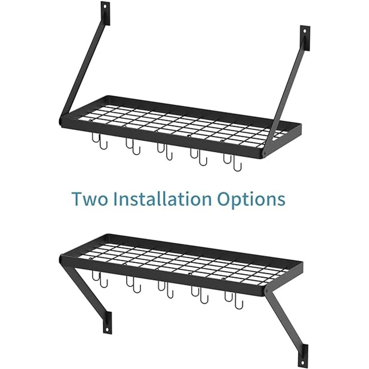 Miyili KR301B1 Estante organizador para ollas de cocina y cacerola con 10 ganchos, 24.0 x 10.0 in, color negro