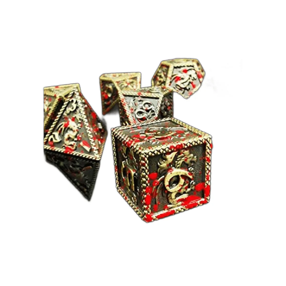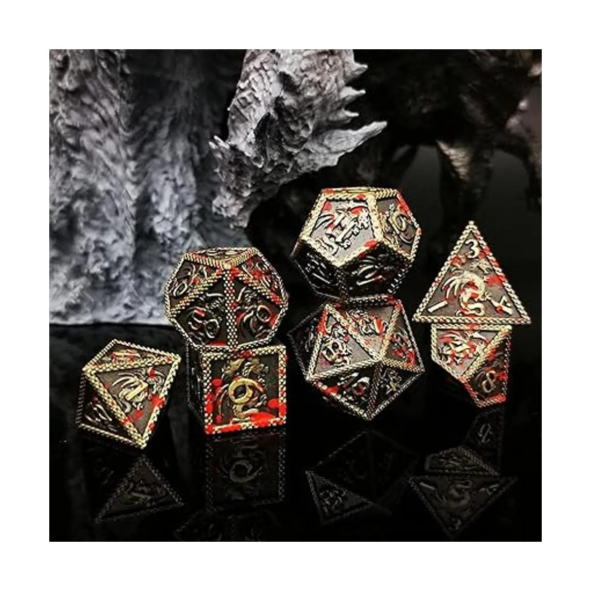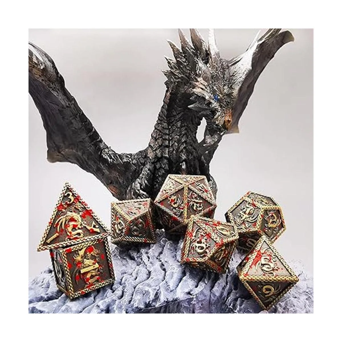 MJDICEOK Juego de dados DND de dragón manchado de sangre de metal, 7 dados de juego de rol, dados sólidos DD, bronce antiguo