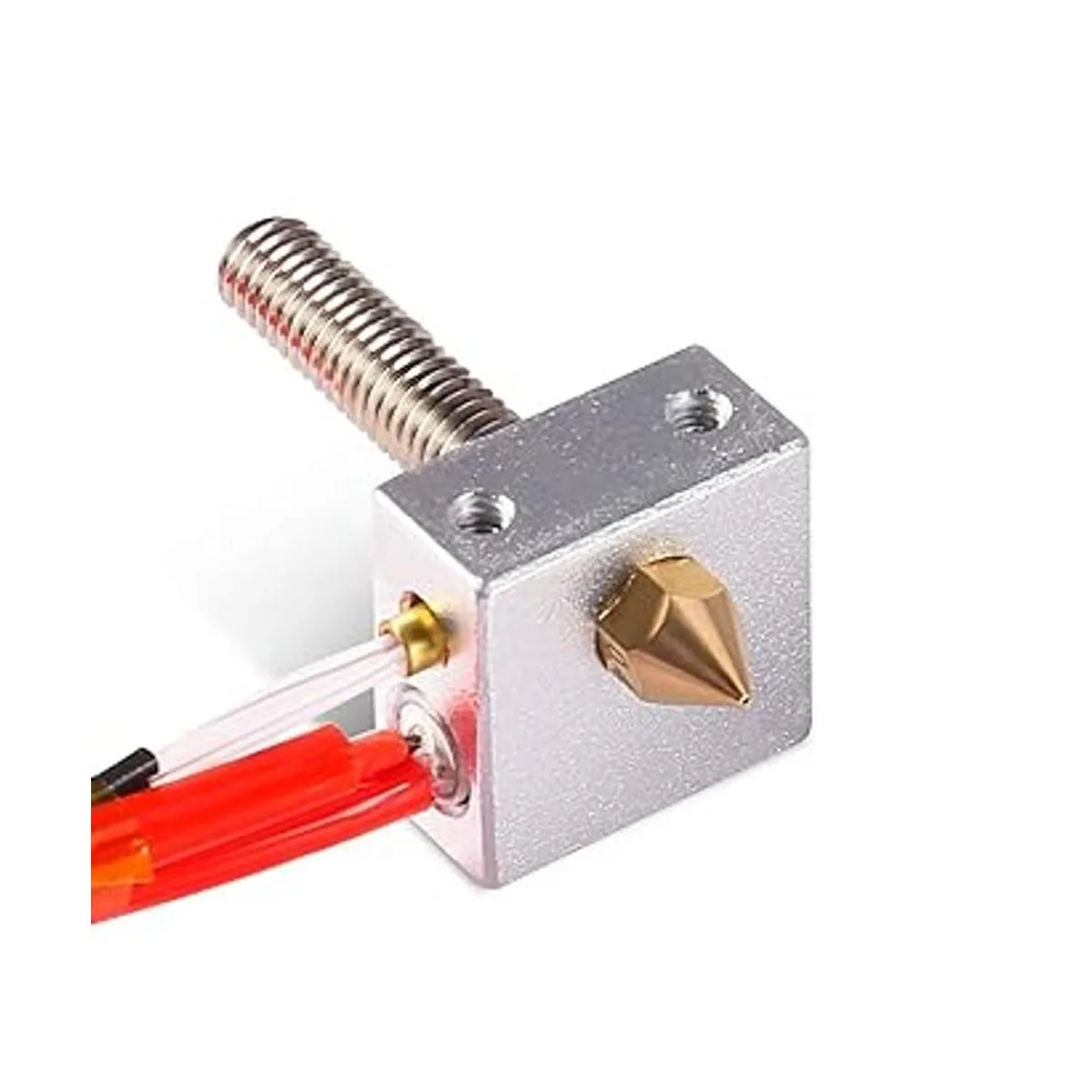 Bloque de calentador: bloque de aluminio de 0.8 x 0.8 x 0.4 in, viene con un tornillo M6d necesario. Funciona perfectamente con filamentos ABS y PLA.