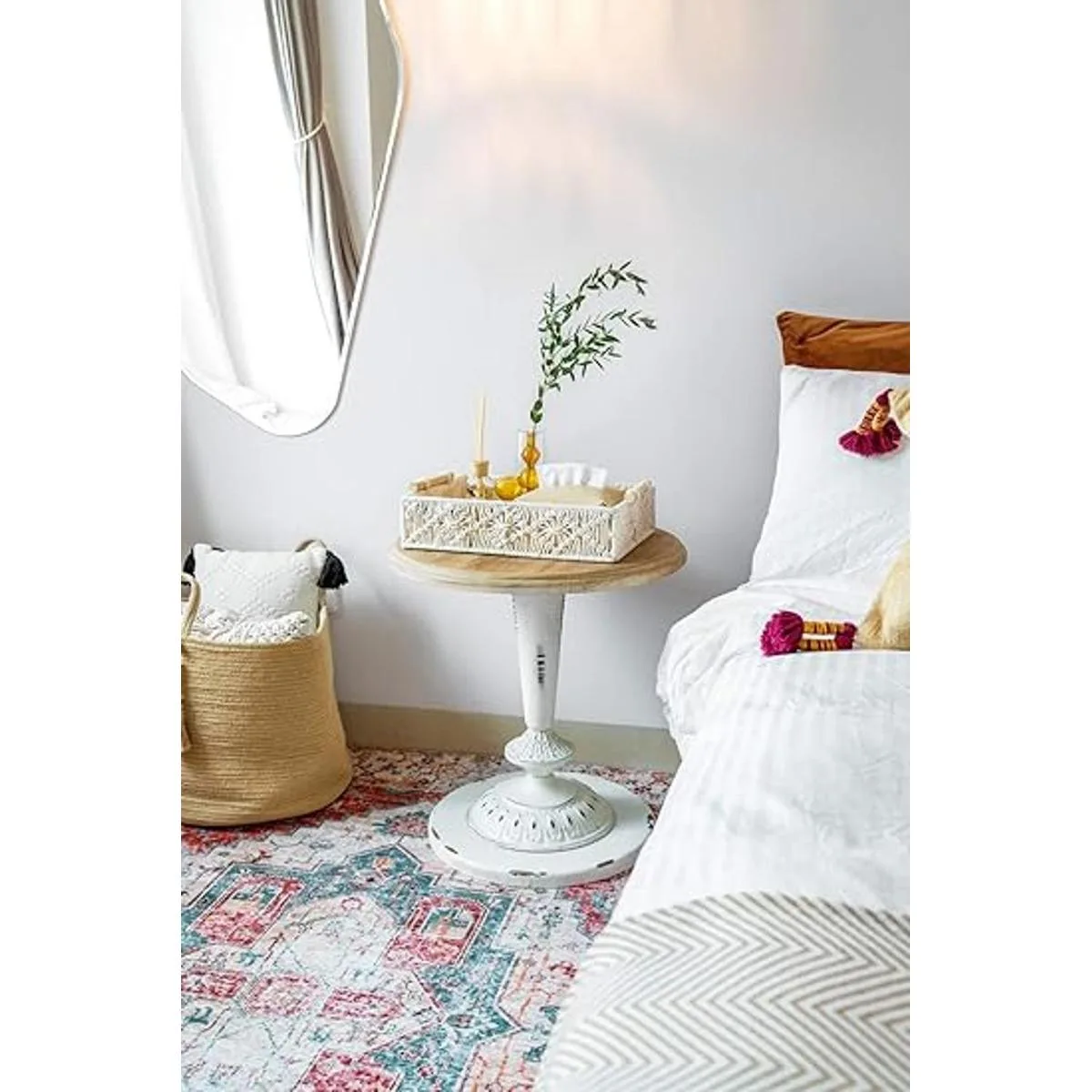 Bandeja de almacenamiento decorativa: la bandeja de macramé combina bien con diferentes estilos de decoración del hogar. Tiene un gran efecto decorativo cuando se coloca en la mesa y mesa de entrada, tocador, otomana en tu dormitorio, sala de estar o cocina. Es una hermosa bandeja de estilo bohemio, y será una decoración elegante en tu hogar.