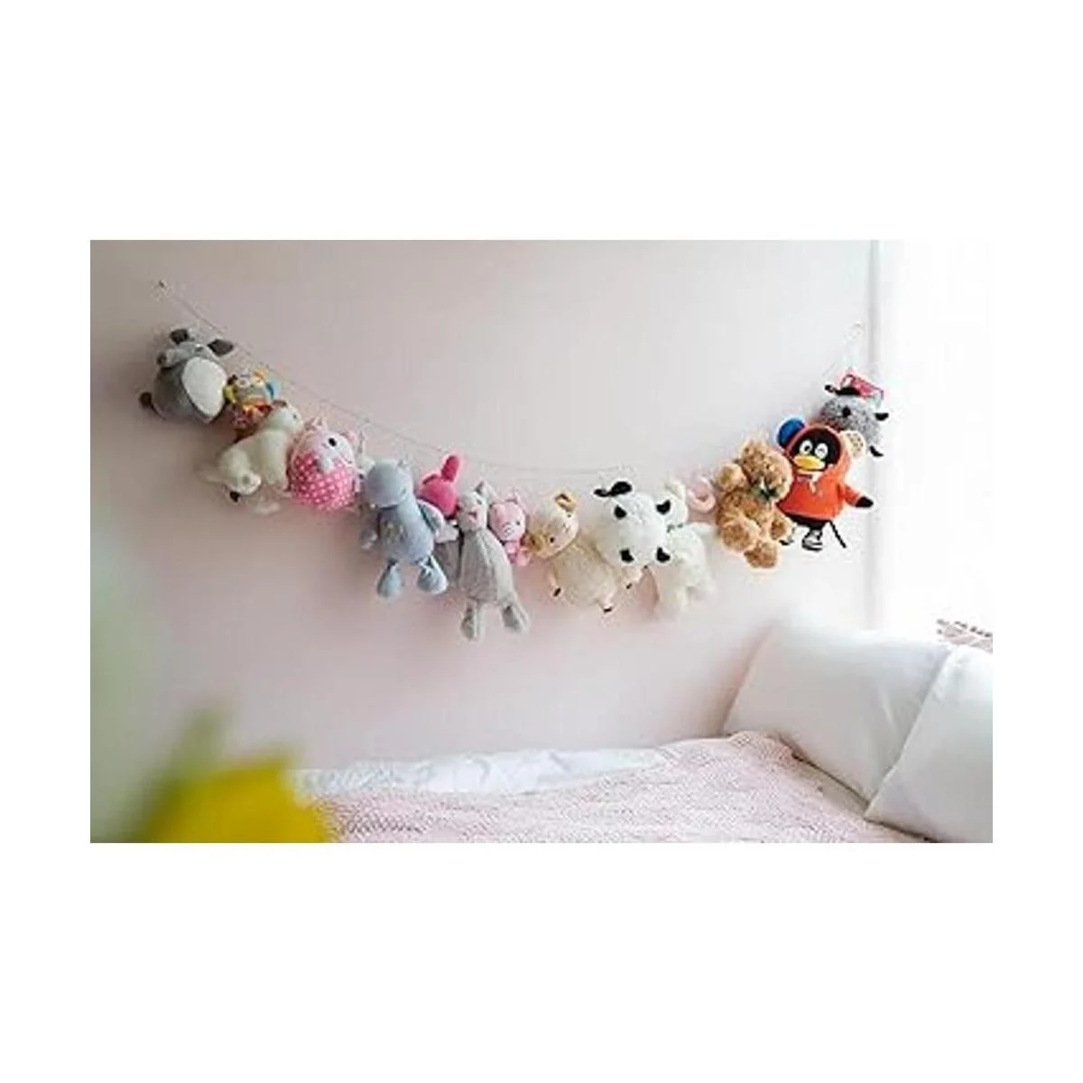 Mkono Cadena de almacenamiento de animales de peluche, organizador de juguetes para niños, con 20 clips para animales de peluche, soporte de exhibición de juguetes simples, colgador de animales para guardería, sala de juegos, habitación de niños, 1 pieza
