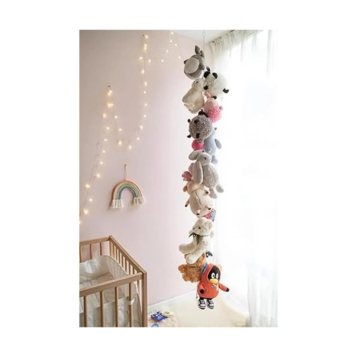 Decorativo y duradero: simple pero práctico, este colgador de juguetes para animales de peluche no solo puede almacenar, sino que mantiene los bonitos animales de peluche en exhibición. Es fácil de alcanzar e intercambiar los peluches. Hecha de materiales metálicos de alta calidad, nuestra cadena de almacenamiento de juguetes tiene una buena capacidad de carga y es duradera, que durará años.