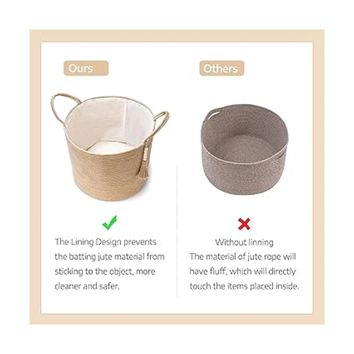 Materiales: Cuerda de yute natural. El tamaño es: 16 pulgadas de ancho x 13.8 pulgadas de largo, hecha de material ecológico y saludable. El envío plegado puede hacer que la canasta se distorsione un poco, pero los defectos de doblado desaparecerán con el tiempo. Usar y llenar la cesta ayudará a acelerar el proceso. Mkono es una marca registrada y nuestro producto es de fabricación profesional.