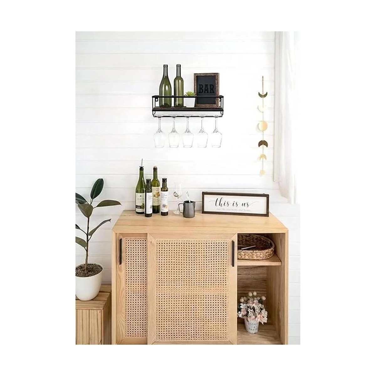 Estilo retro y clásico: el estante para copas de vino está hecho de acero resistente y madera recuperada con acabado de horneado. El delicado proceso de fabricación añade un estilo de aspecto vintage a tu entrada de sala de estar, etc.