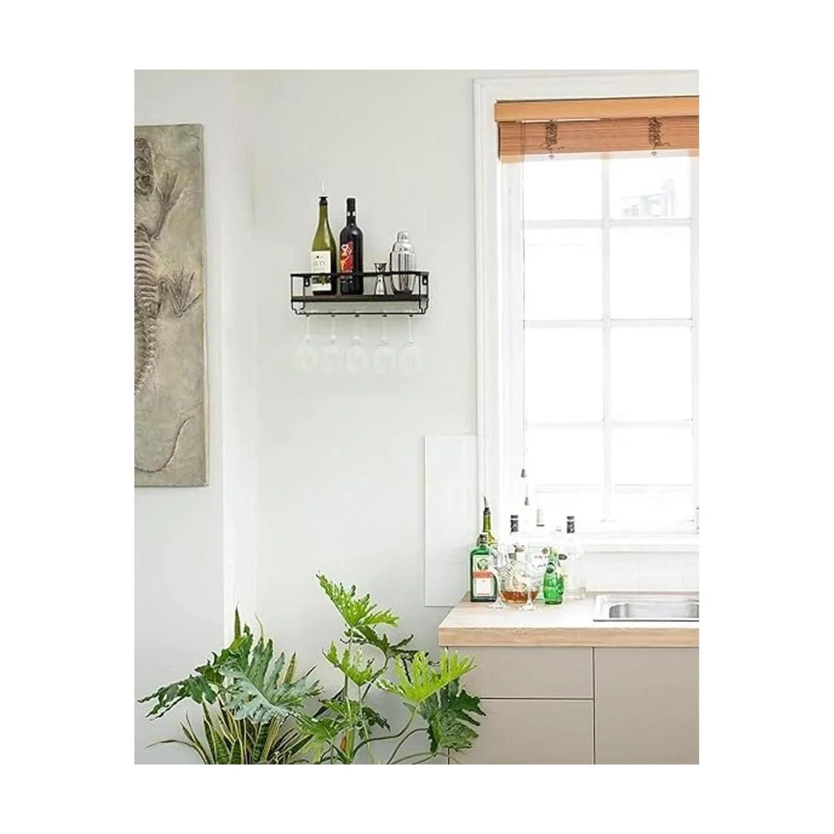 Mkono Estante de vino para montaje en la pared, estante flotante de madera para botella de vino rústica con colgador de tallos para plantas modernas, fotos, soporte de almacenamiento para cocina, comedor, hogar, bar