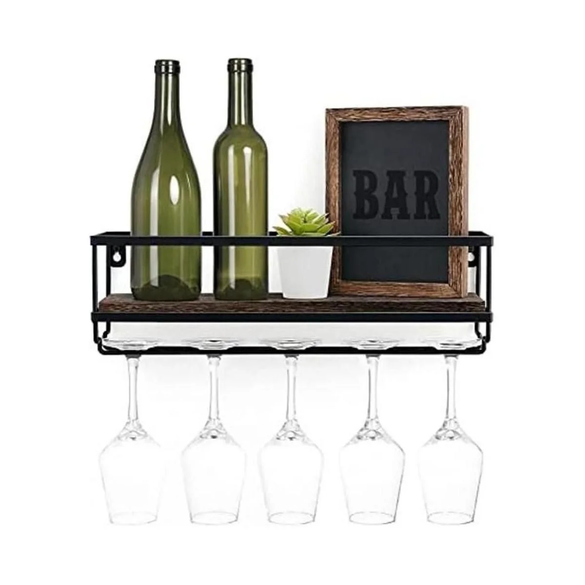 Ahorro de espacio y fácil de transportar: el estante colgante para vino puede colgar varias y diferentes flautas, tazas, marco de fotos, libros de cocina y plantas en maceta. Mientras estás cansado de un solo lugar, puedes llevarlo fácilmente para instalar en tu comedor, bar en casa, sala de estudio o bodega. Estilo rústico que muestra el arte y el arte