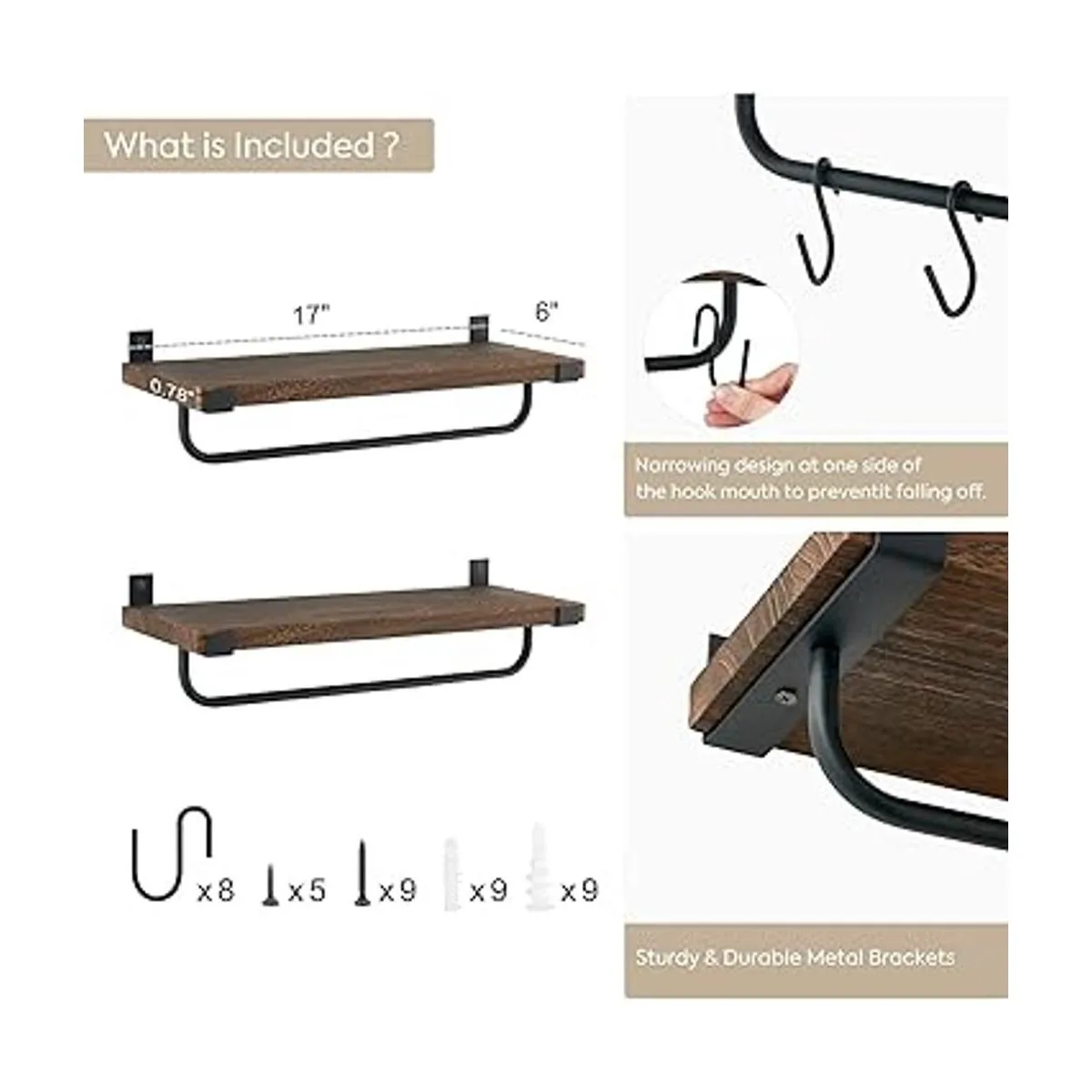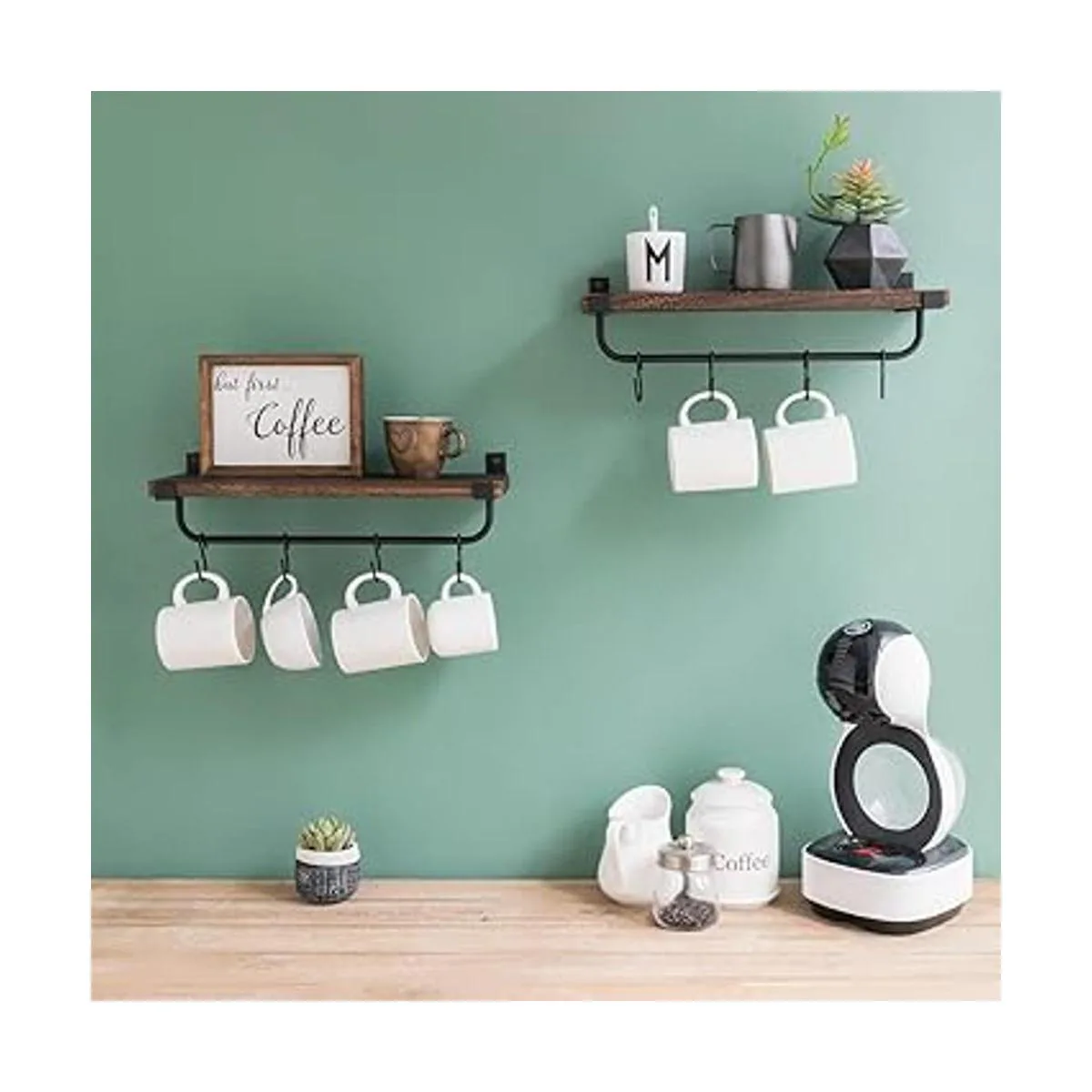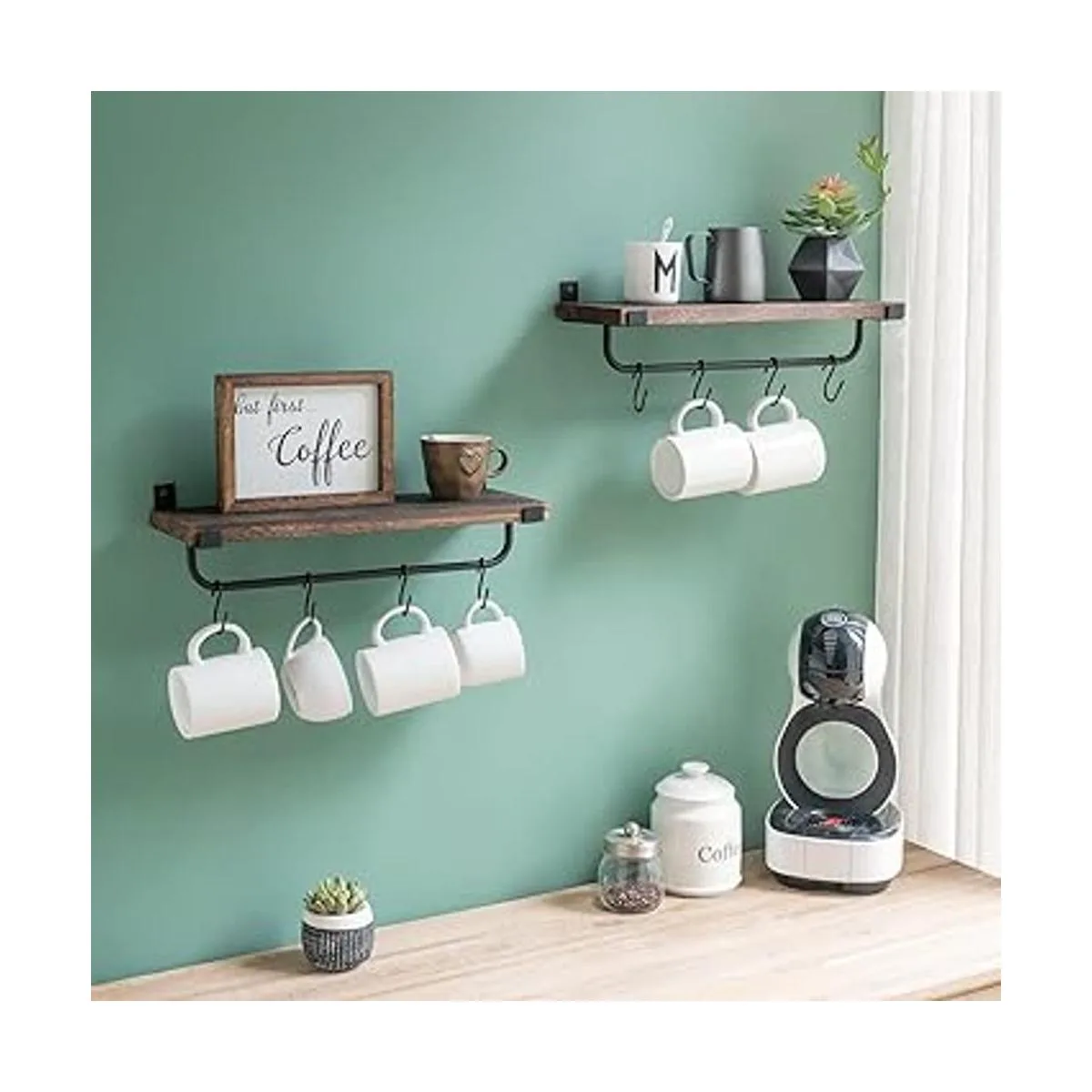 Mkono Juego de 2 soportes para tazas de café montados en la pared, estantes flotantes rústicos para cafetería, accesorios de cafetería, ganchos de madera para tazas de té, ganchos para organizar utensilios de cocina, decoración del hogar para cocina y baño