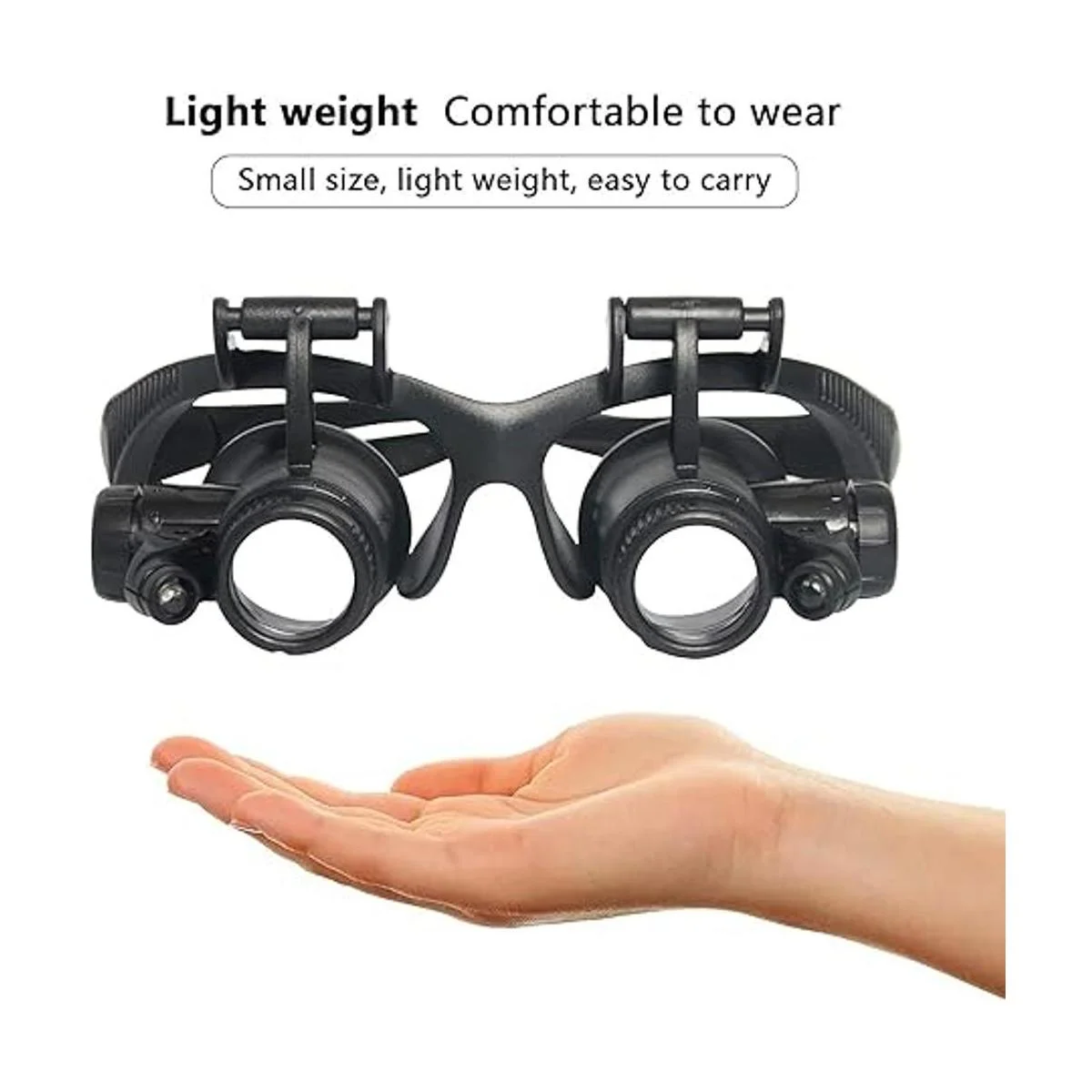 Diseño montado en la cabeza: nuestra lupa montada en la cabeza con luz LED es para una observación cercana. Recomendamos una distancia de observación de 1 a 0.8 in. La lupa manos libres montada en la cabeza es un marco ergonómico para gafas, que puede evitar eficazmente que la lupa se caiga y reducir la presión sobre el puente de la nariz. Es ligero y no se desliza, asegurando un desgaste firme y reduciendo la fatiga durante el uso a largo plazo.