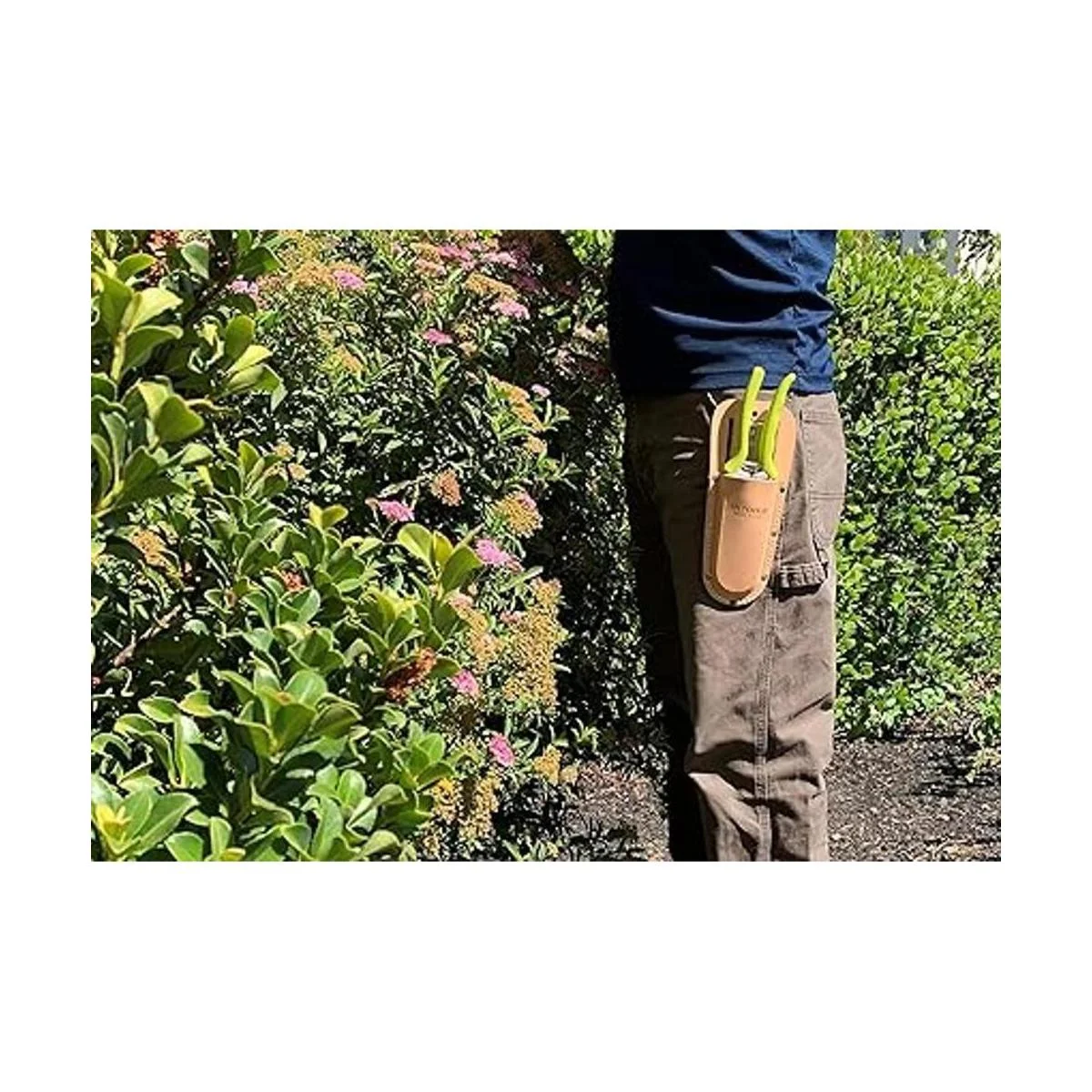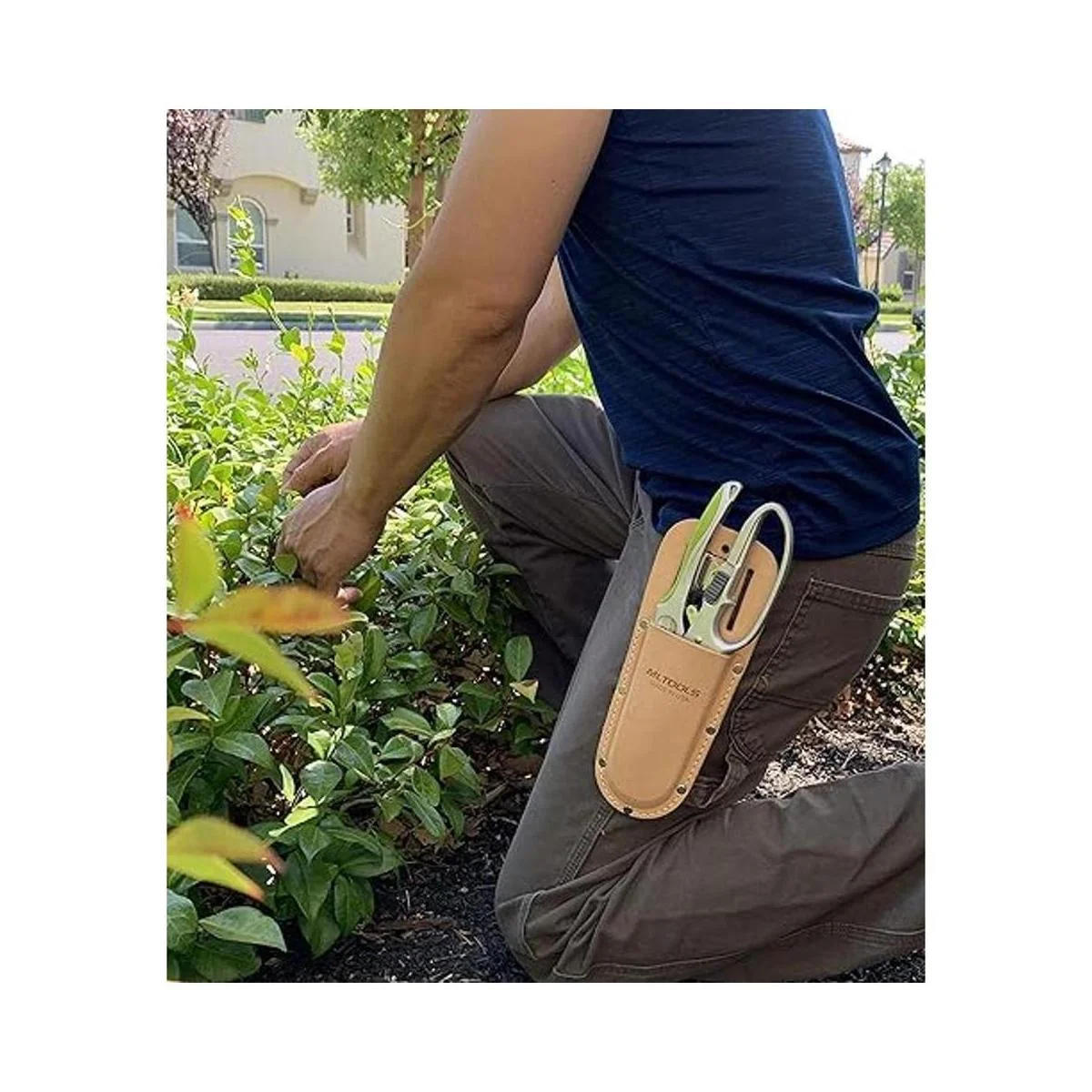 MLTOOLS Funda de cuero para tijeras de podar, fabricada en Estados Unidos, 100 cuero de grano fino, estuche para equipos de jardinería con clip de metal de acero, bolsa Nifty para podadoras de mano P8235, ranuras anchas para cinturón 1 paquete