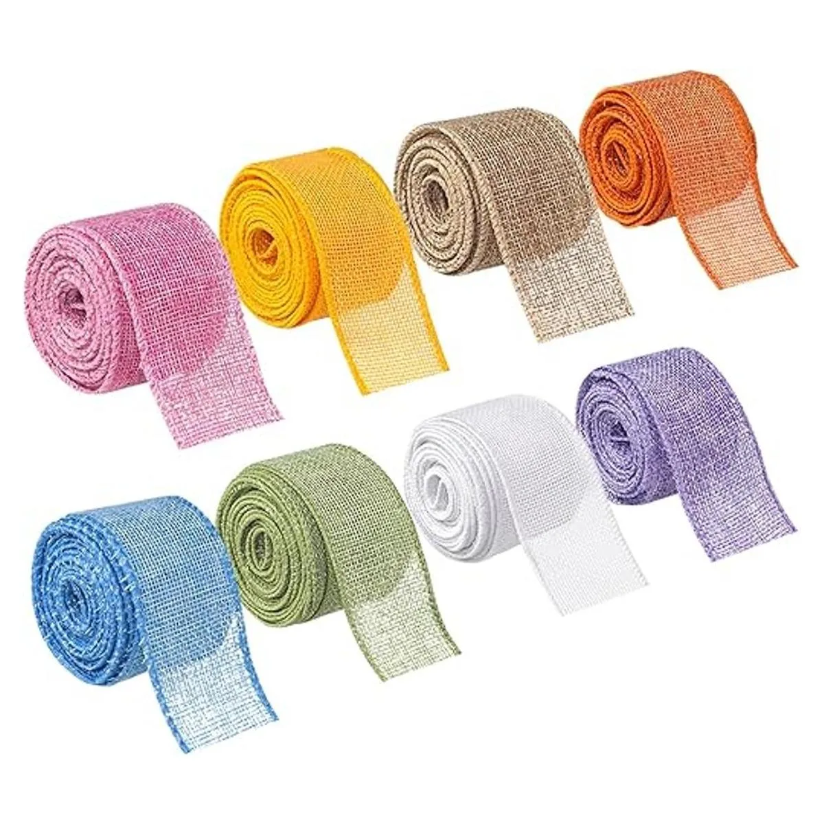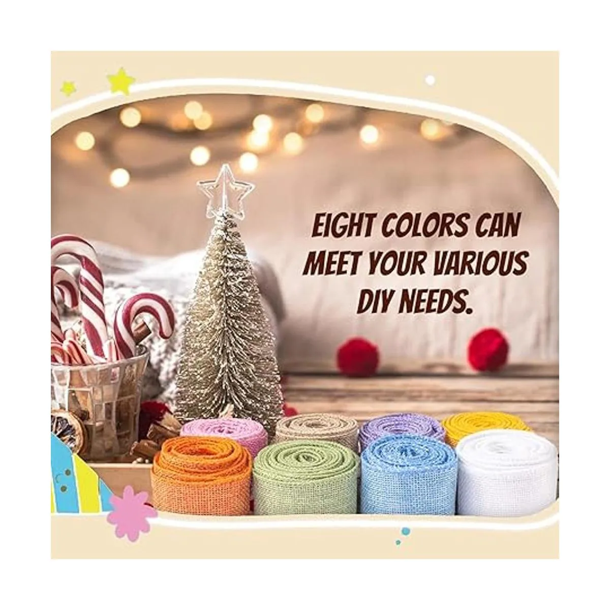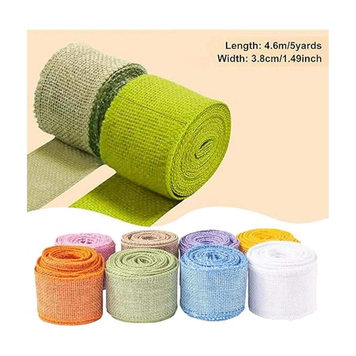 Cinta de arpillera con alambre de 8 colores: hay 8 rollos de cintas de arpillera en el paquete. Los hermosos colores y la cantidad suficiente son suficientes para satisfacer tus diversas necesidades de decoración. Cada rollo de la cinta natural de color mide aproximadamente 1.5 in de ancho, 14.8 ft de largo, 40 yardas en total, lo suficientemente largo para que puedas cortar cualquier forma como quieras y satisfacer la mayoría de tus necesidades de manualidades en diferentes estaciones, vacaciones