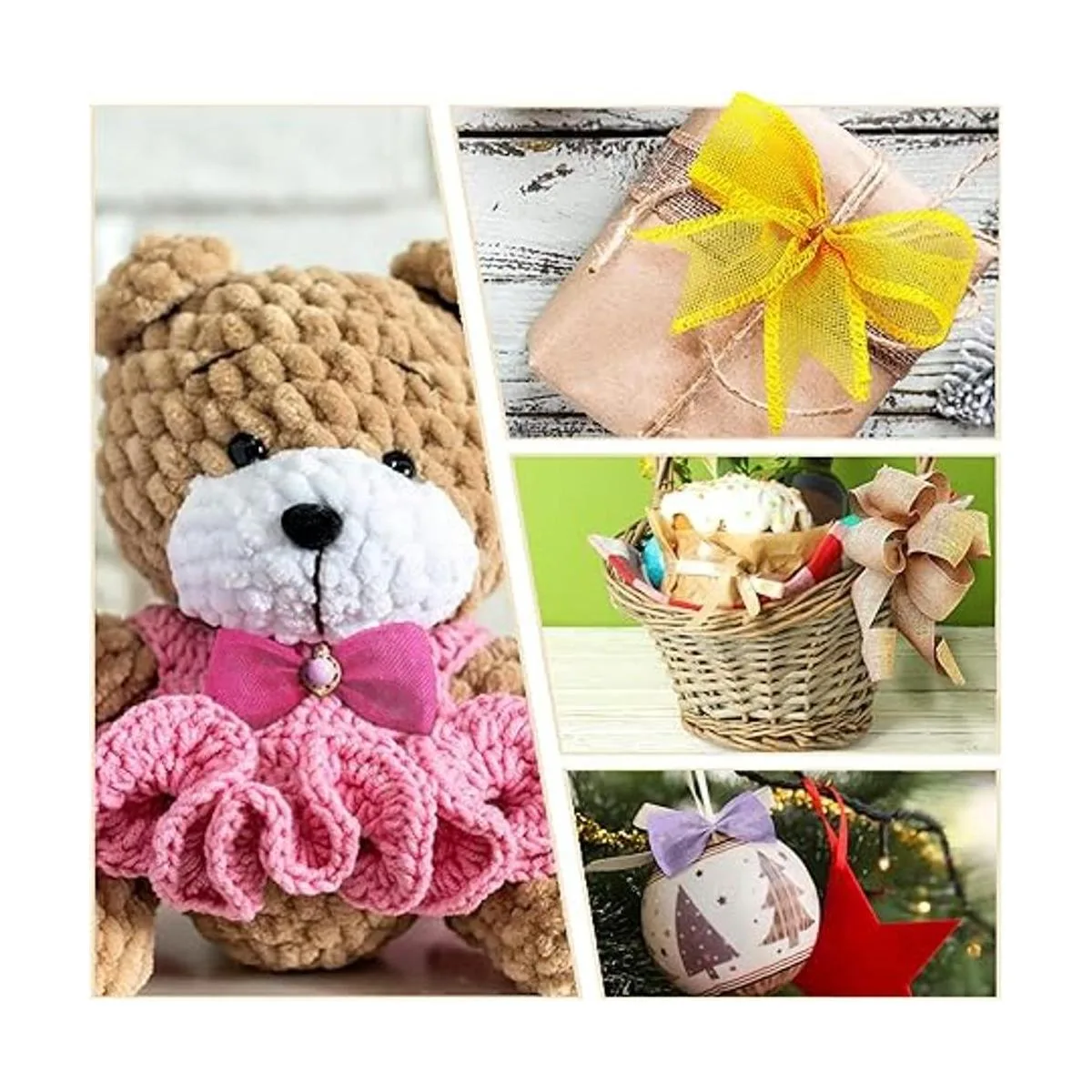 Cinta de borde con alambre: estas cintas de envoltura están hechas de arpillera de calidad y equipadas con 2 piezas de alambre en ambos bordes, se pueden plegar fácilmente de acuerdo a tus necesidades, no te preocupes de que se deforme después de un uso. Las cintas se permiten cortar y su longitud se puede ajustar, cómodo de usar, elige la longitud de acuerdo a tus necesidades
