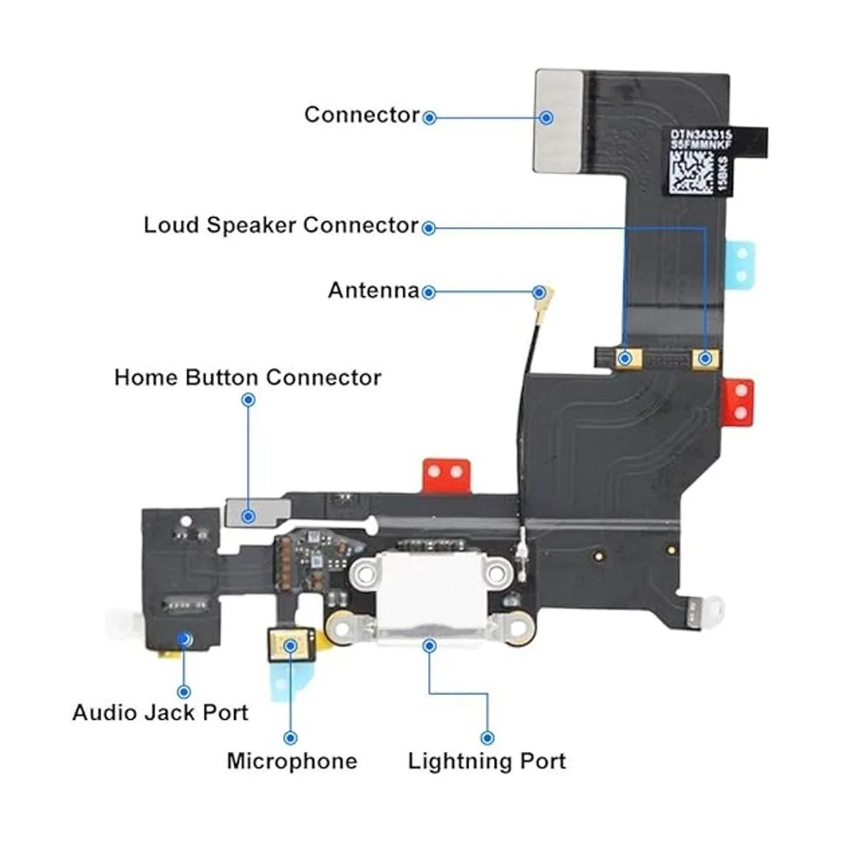MMOBIEL Conector de base compatible con iPhone SE 2016 Cable flexible de puerto de carga, puerto de auriculares, micrófonoantena de repuesto Incluye destornilladores, color blanco