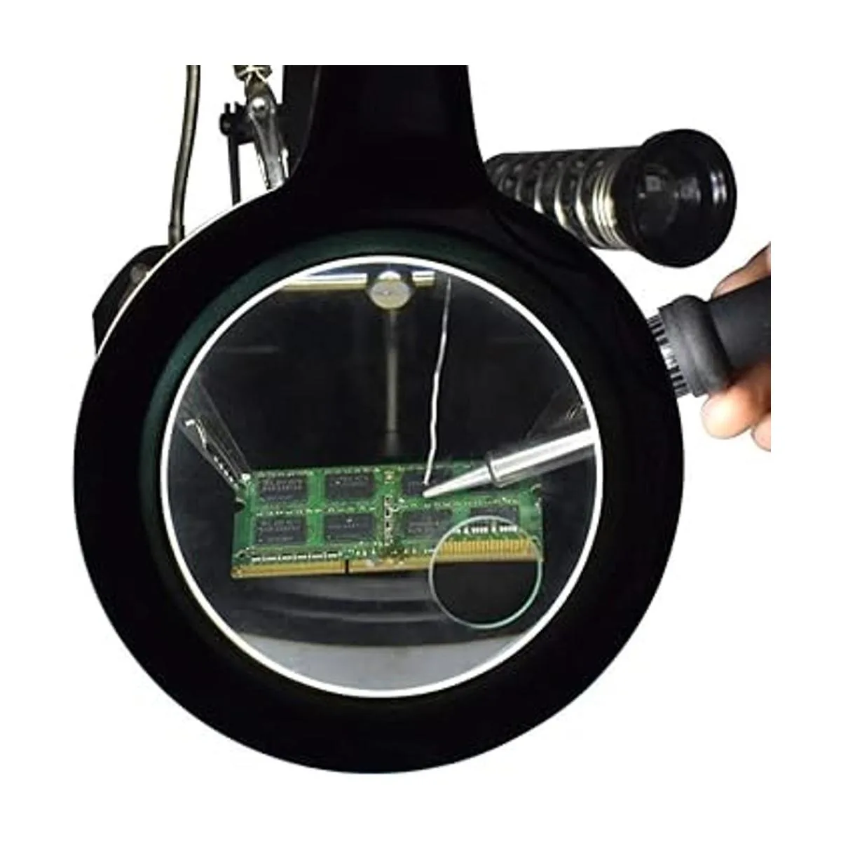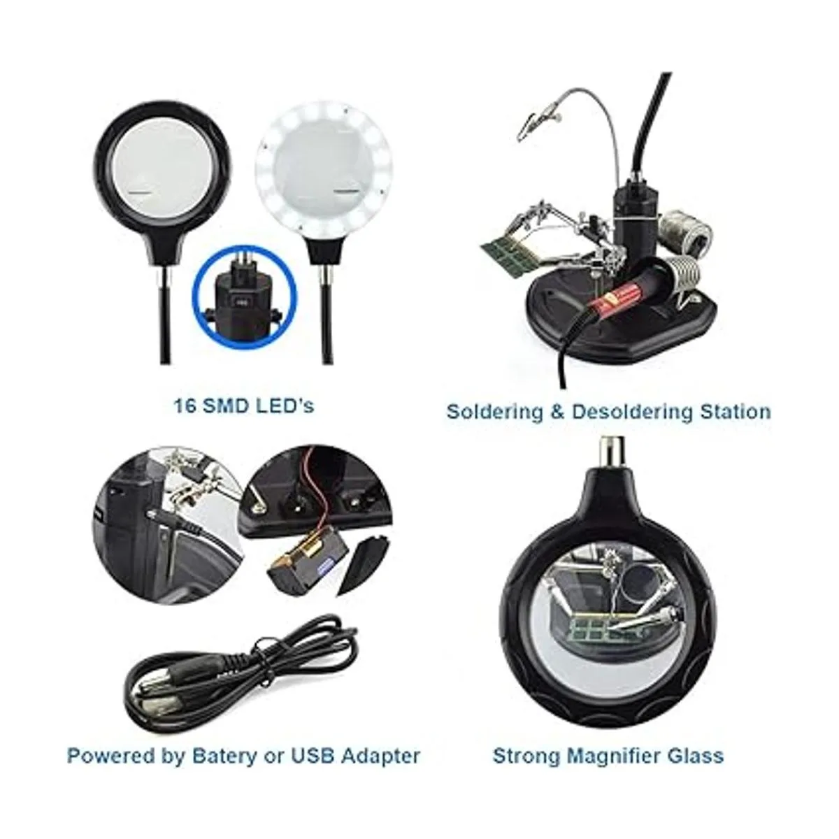 Altamente eficiente: estación de lupa de mano multifuncional iluminada con 16 luces LED SMD de ahorro de energía y súper brillante manos libres. Cuello flexible de 10.433 in que te permite ajustar la lente a la posición donde más la necesitas.