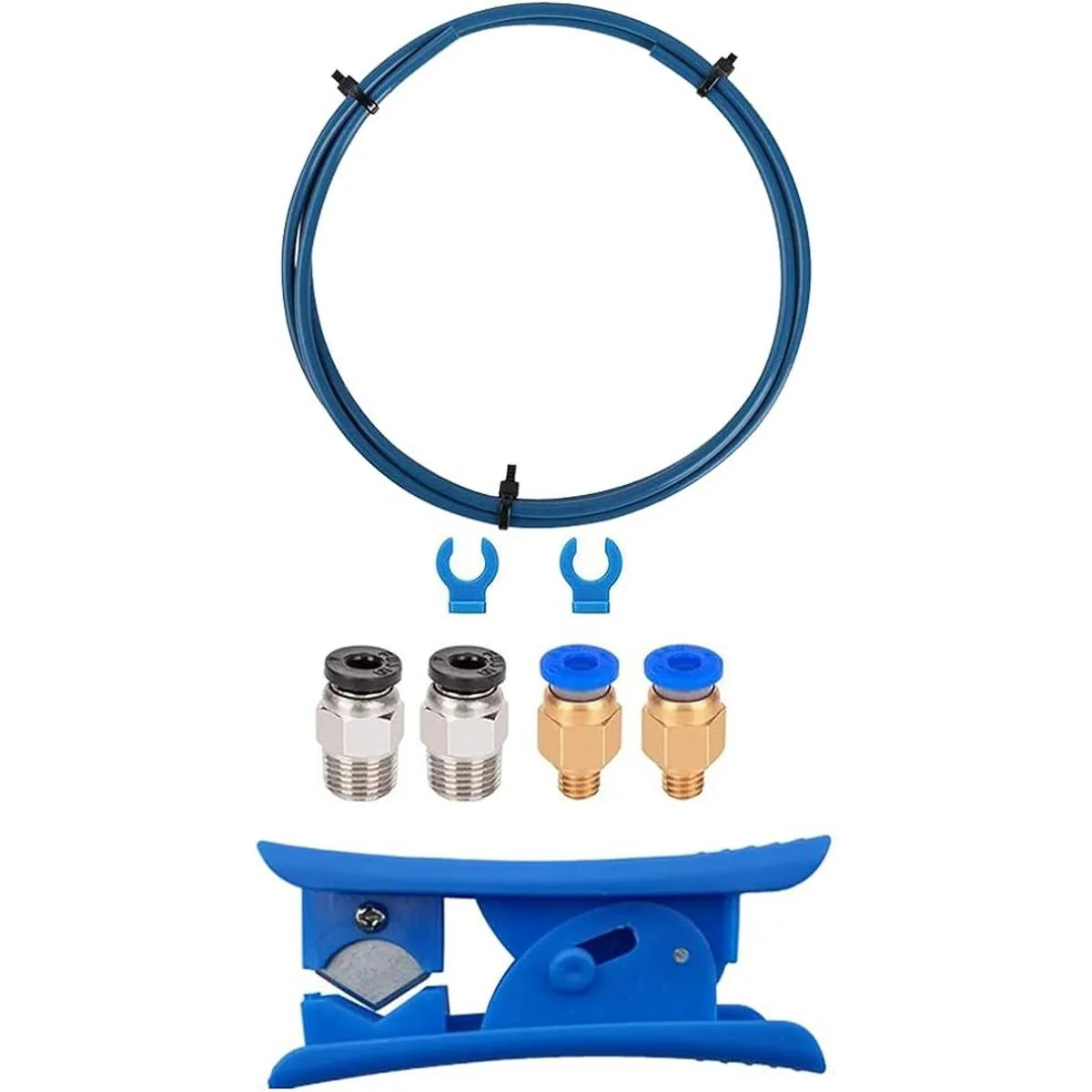 El juego contiene: tubos de PTFE Bowden de 3.3 ft serie XS para filamento de 0.069 in; 2 conectores rectos neumáticos para impresora 3D V6 Bowden J; 1 cortador de tubo de acero inoxidable