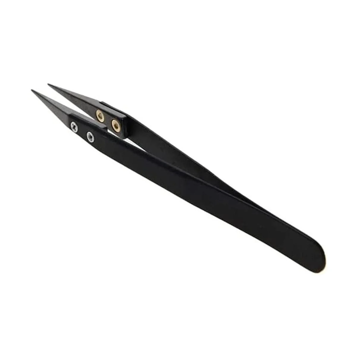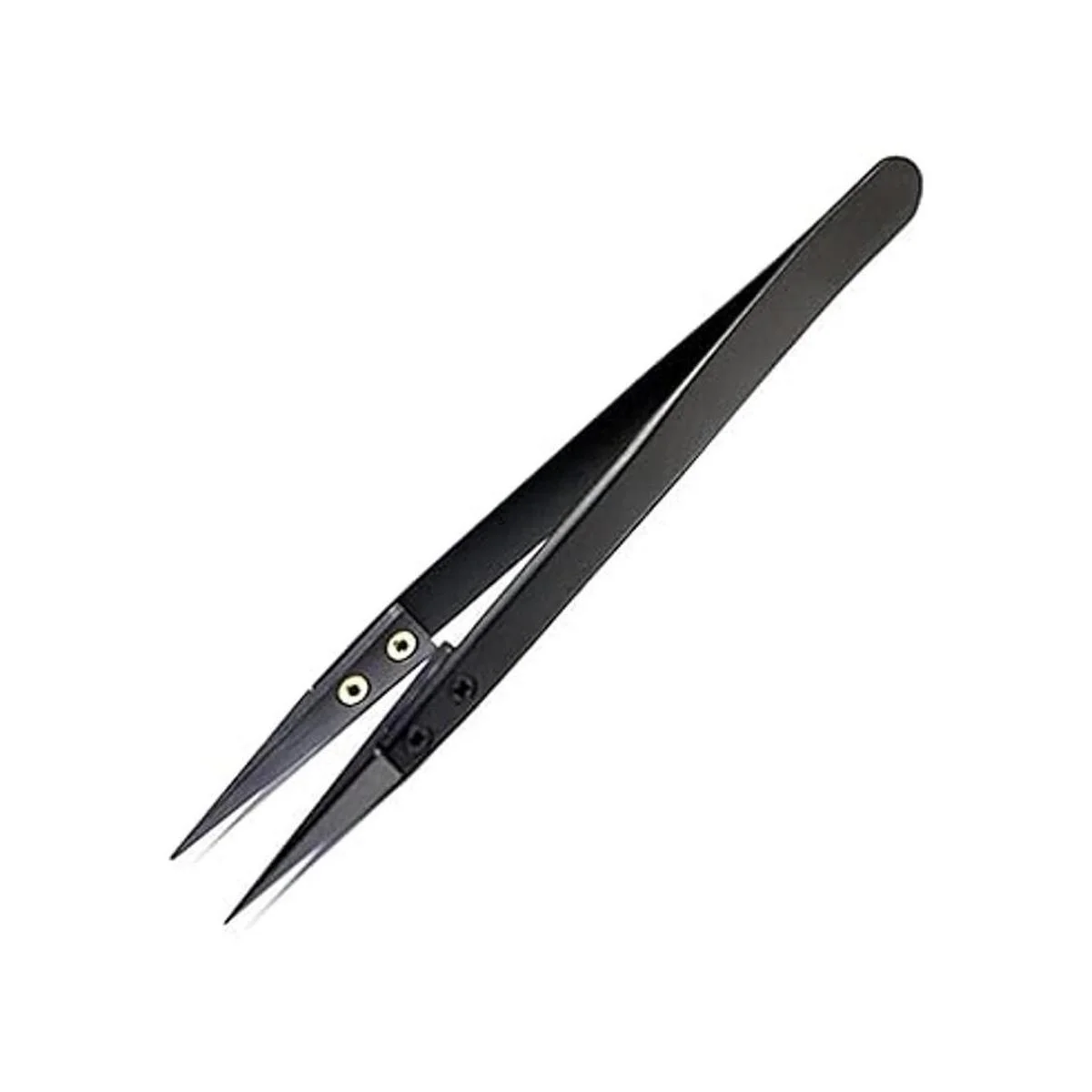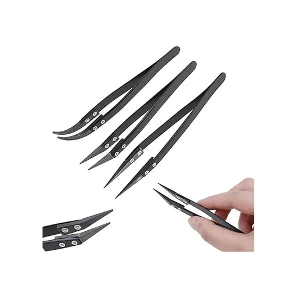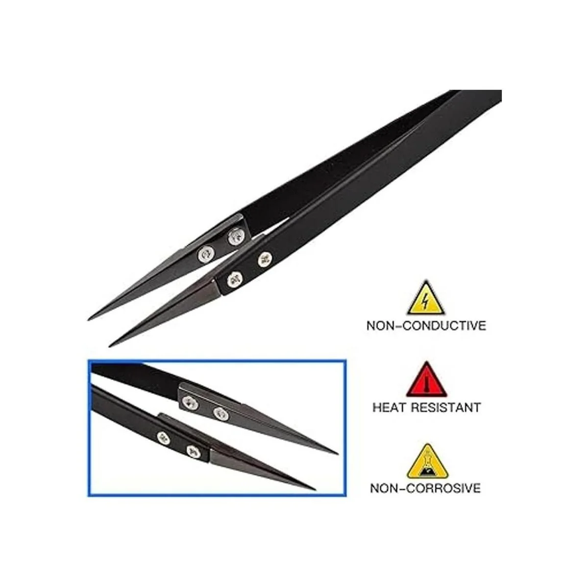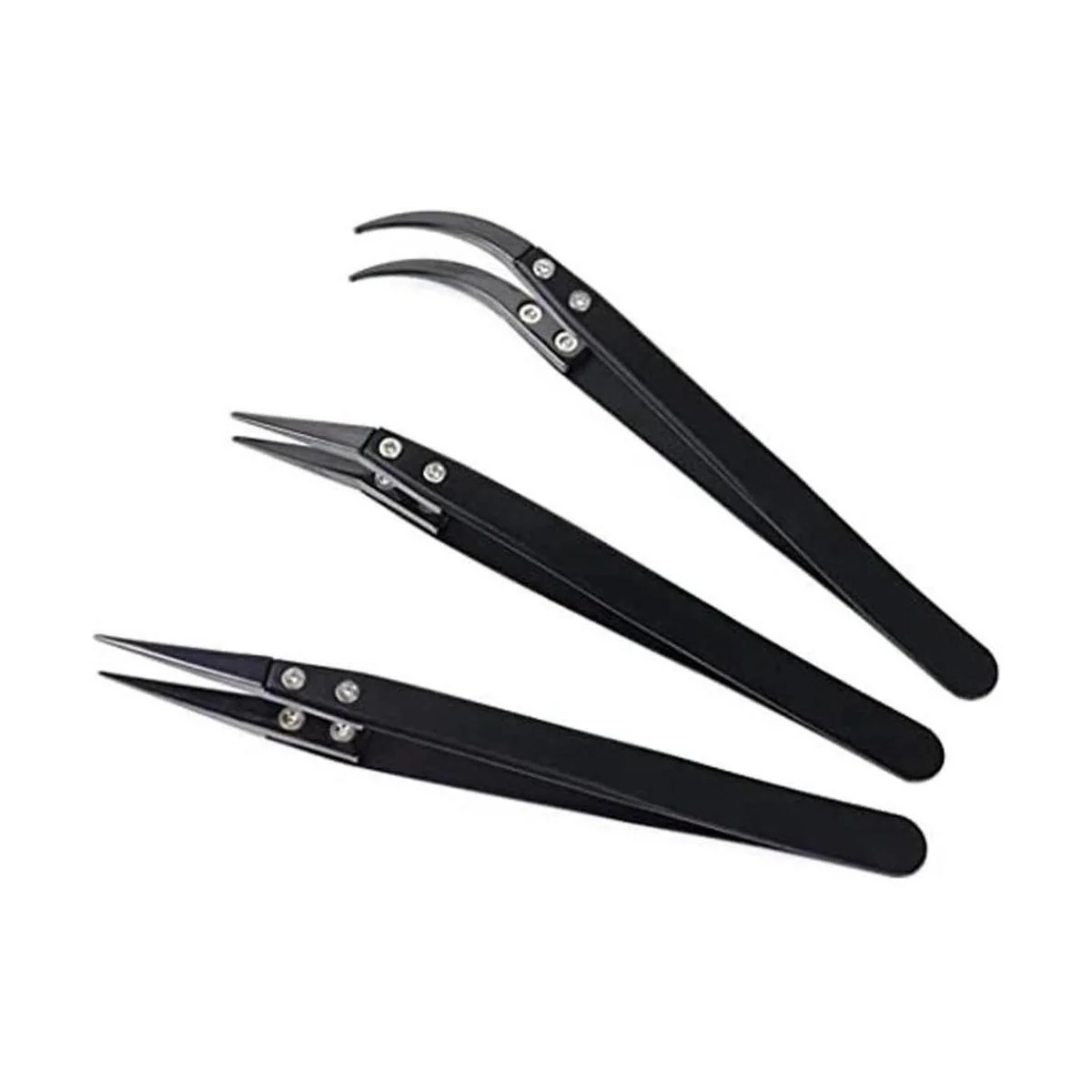 MMOBIEL Juego de 3 pinzas de soldadura de punta de cerámica resistentes al calor 1600 C3000 F para reparación de electrónica, joyas, computadora, trabajos de soldadura de laboratorio, etc. Negro