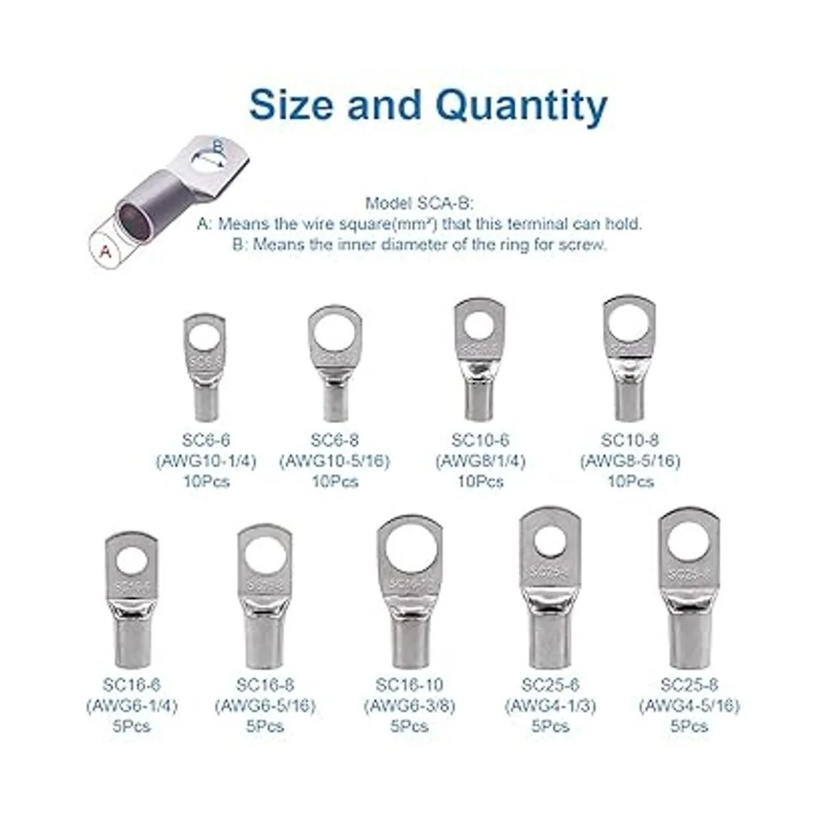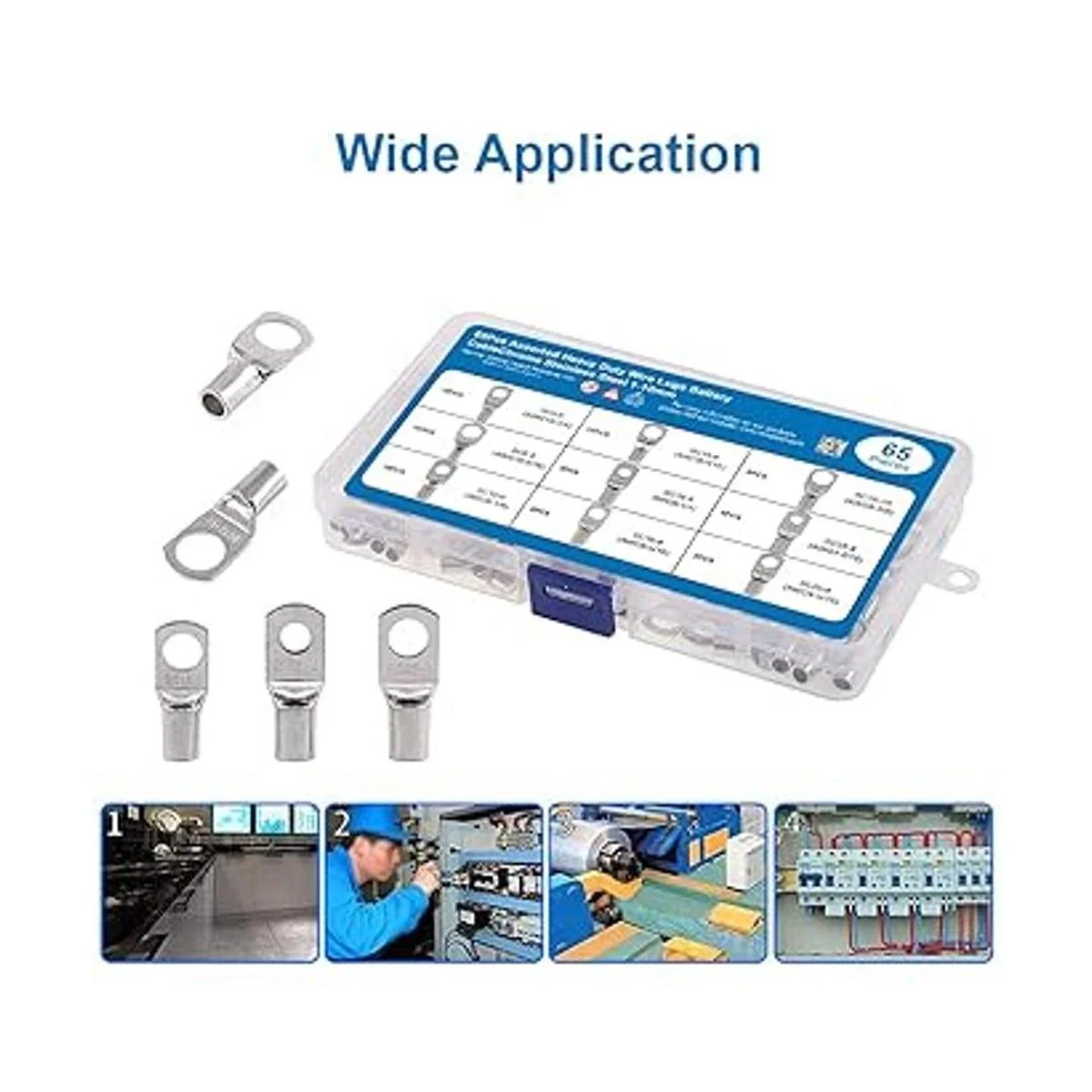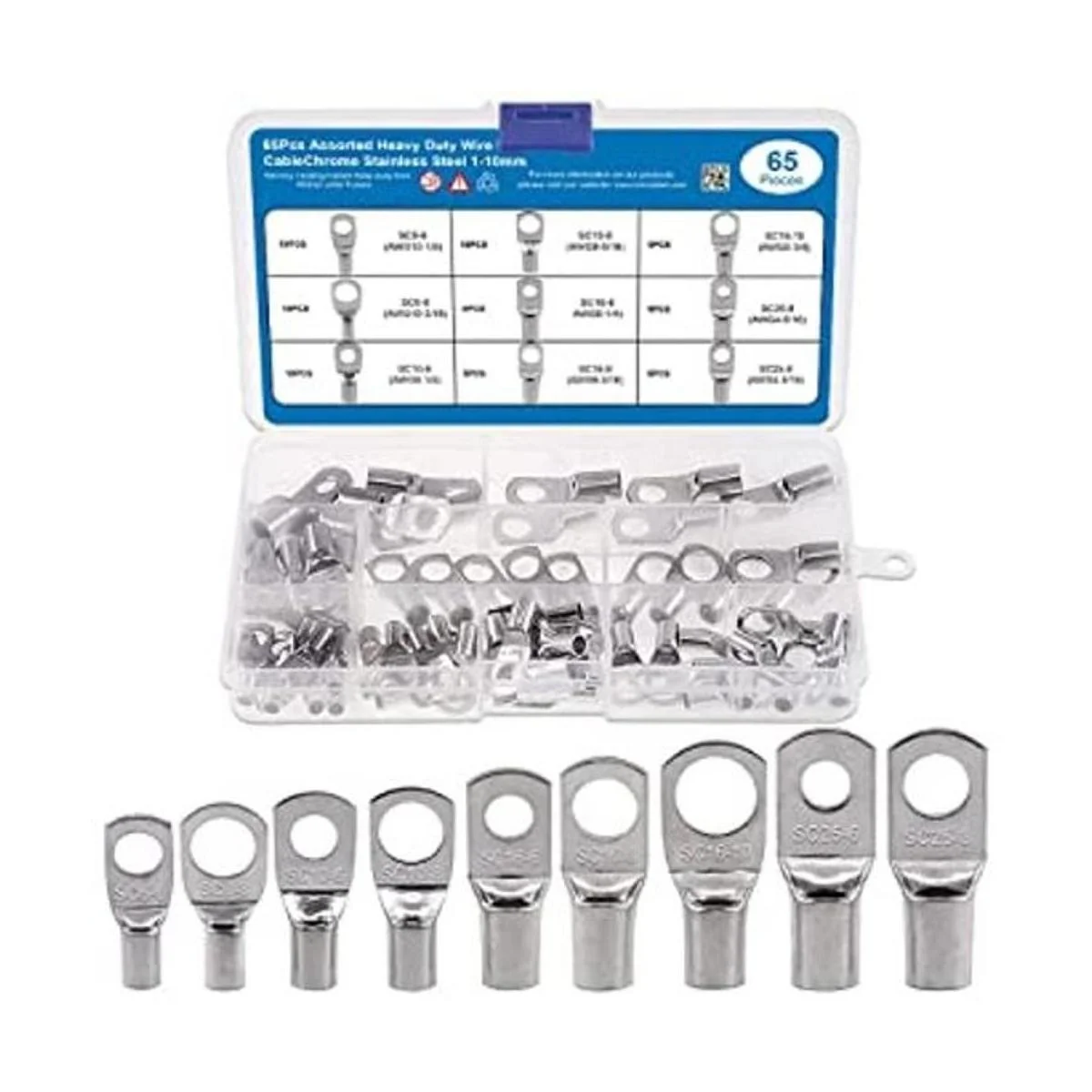 MMOBIEL Juego de 65 terminales de cable de batería, terminales de cable resistentes AWG, juego de conectores de cobre estañado, terminales de anillo de batería, de grado marino, prensado en frío