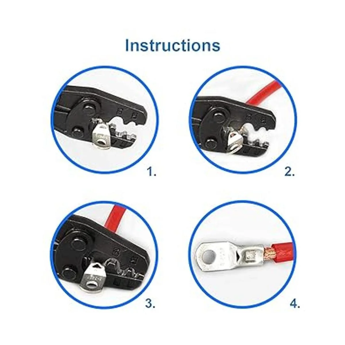 Fácil de usar: estas lengetas de cable de batería son fáciles de engarzar, los alicates engarzarán los cables y las lengetas juntos, pondrán el cable en el extremo trasero del terminal y lo fijarán firmemente para garantizar la conexión y presionarán firmemente la herramienta de crimpado.