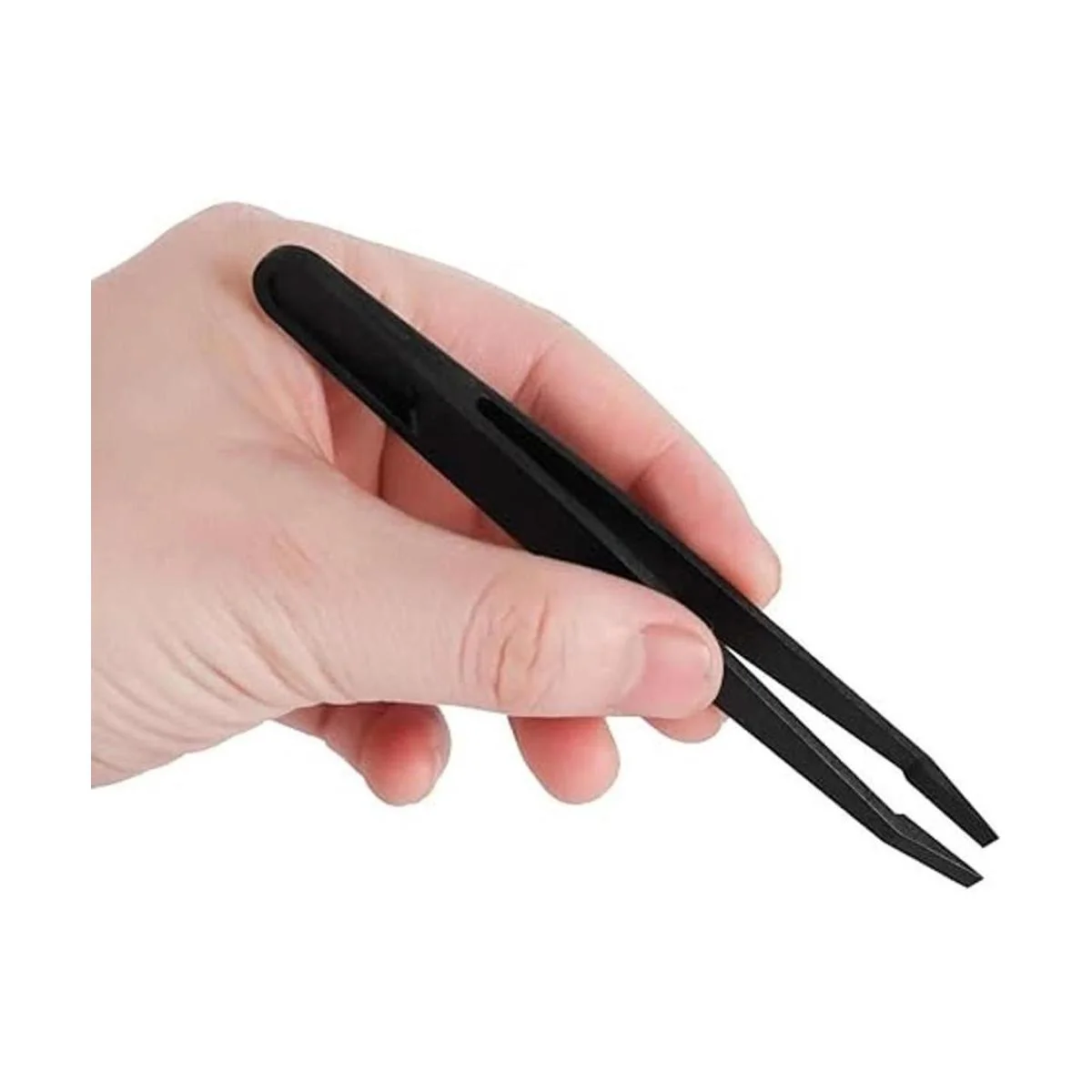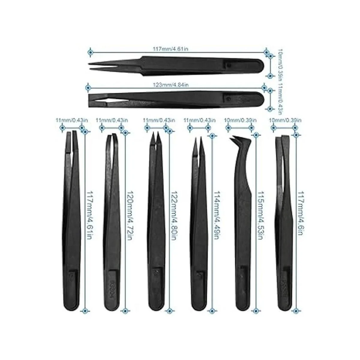 Juego de 8 pinzas de precisión de plástico multifuncionales antiestáticas, pinzas de punta plana inclinadas para electrónica, fabricación de joyas, trabajo de laboratorio, reparación de color negro