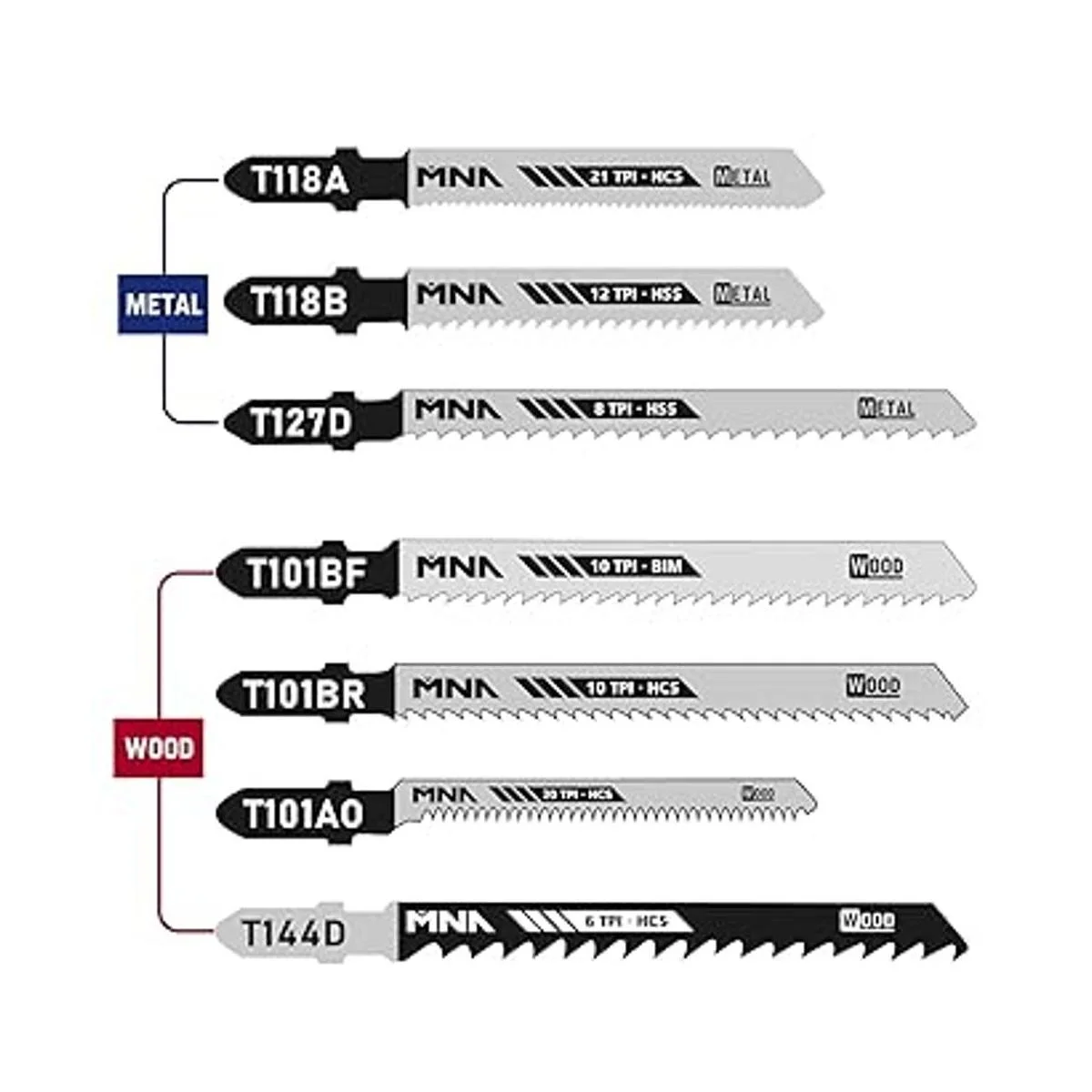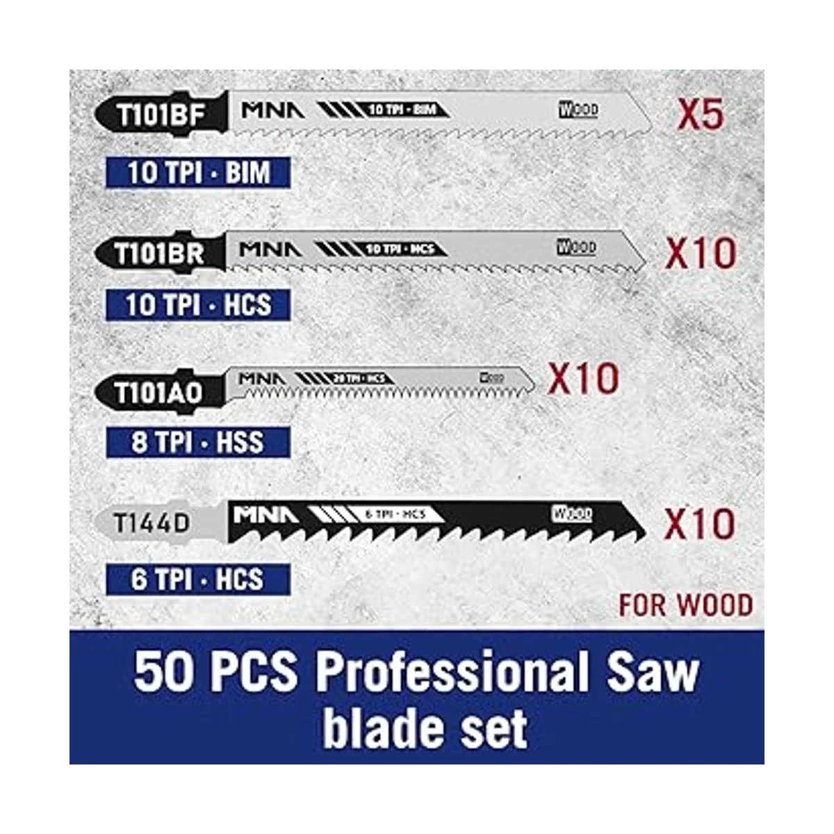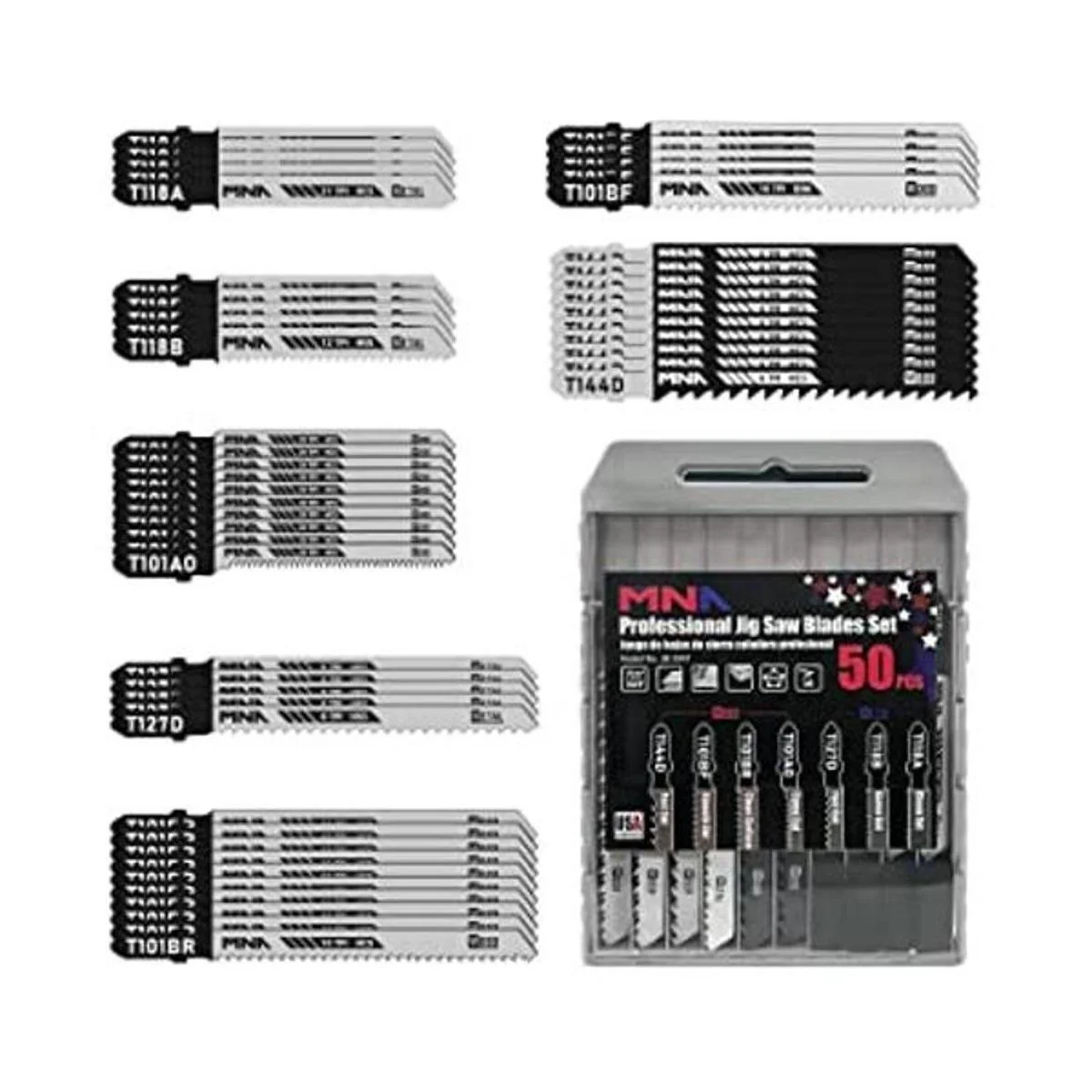 MNA Hojas de sierra multiusos para calar, 50 piezas, kit de sierra de calar surtida, paquete económico para corte de madera, plástico y metal con estuche de transporte