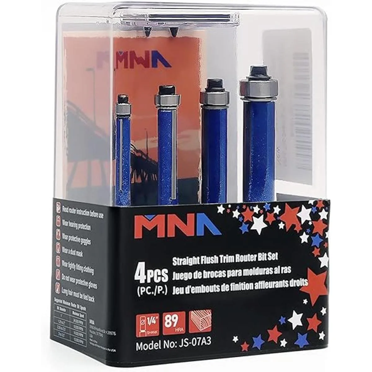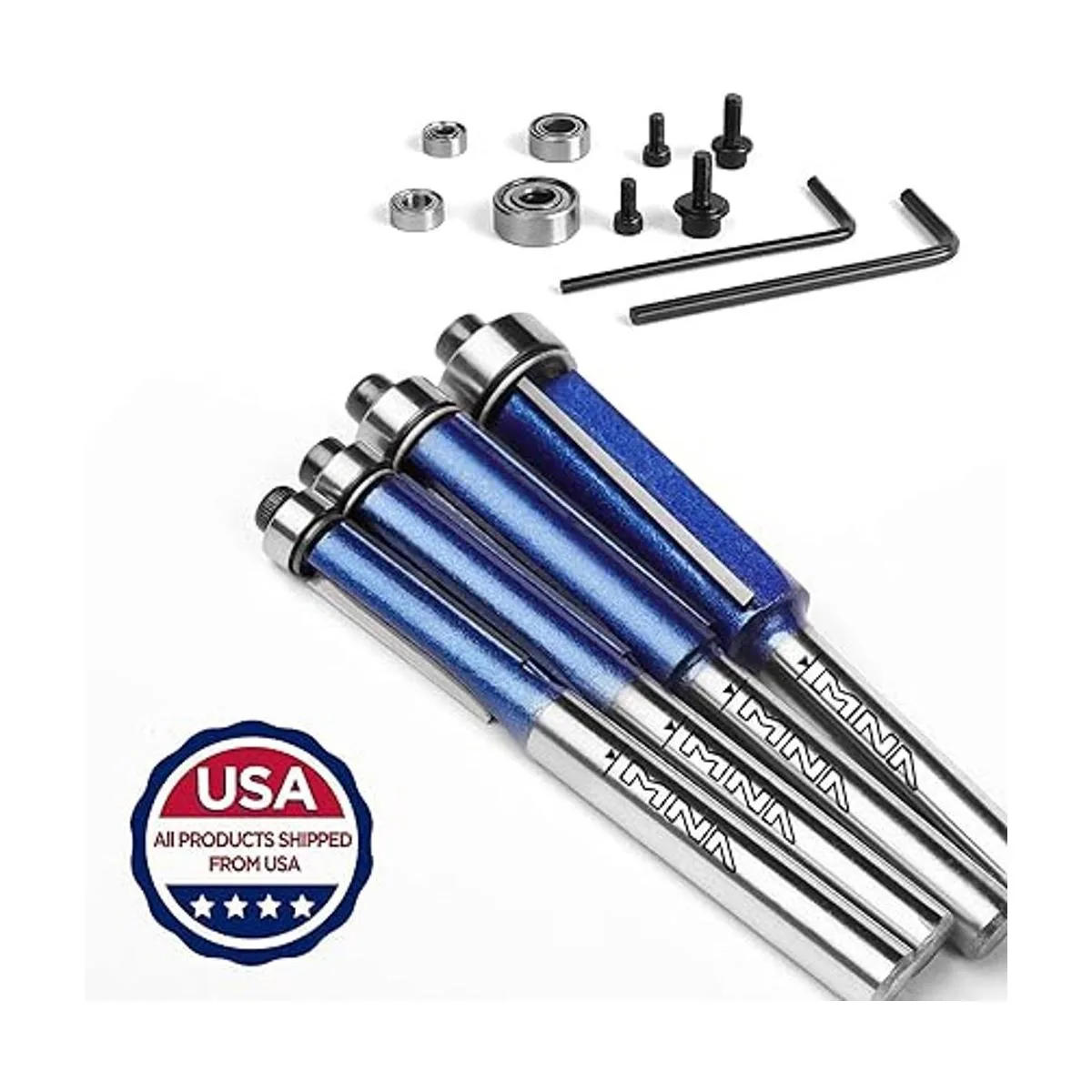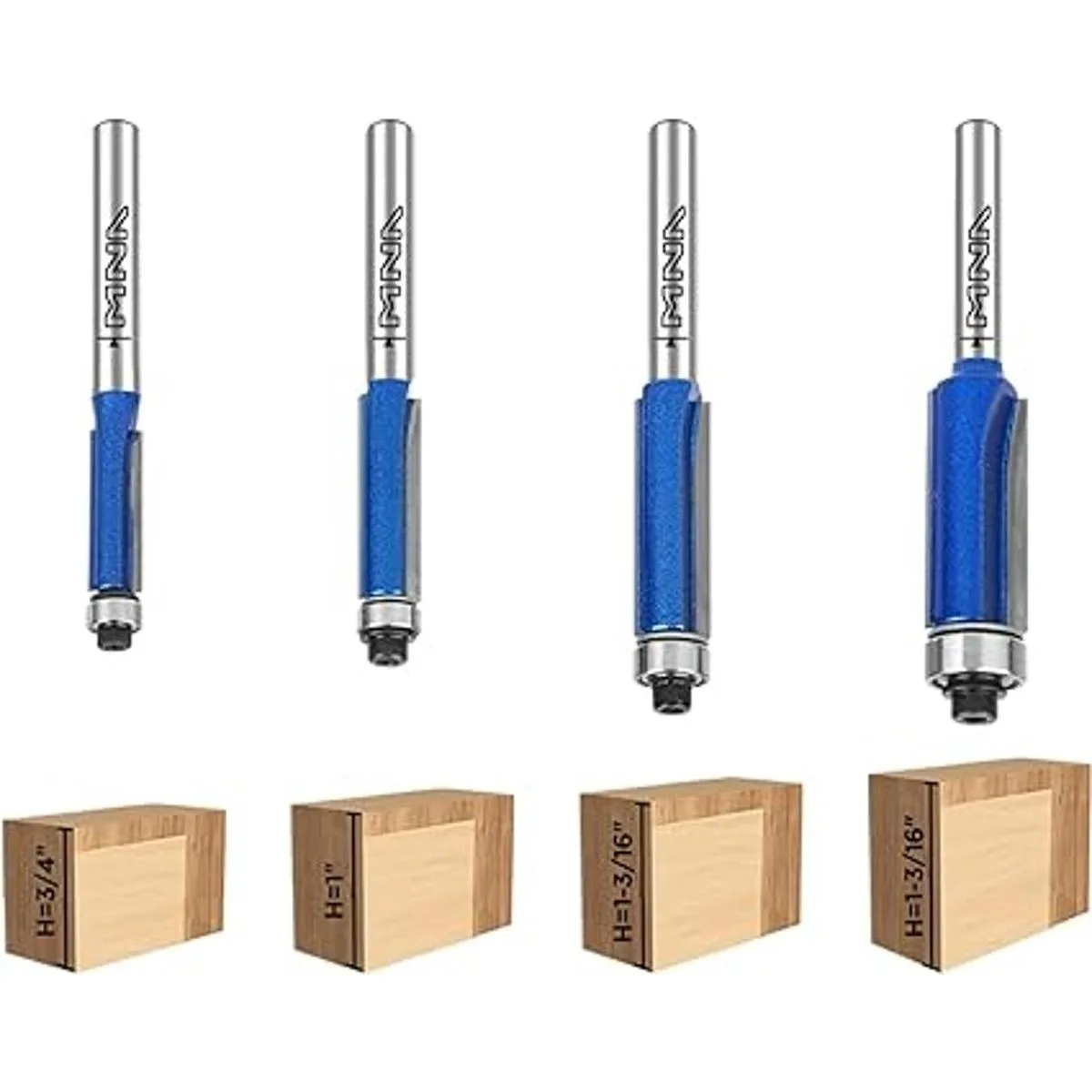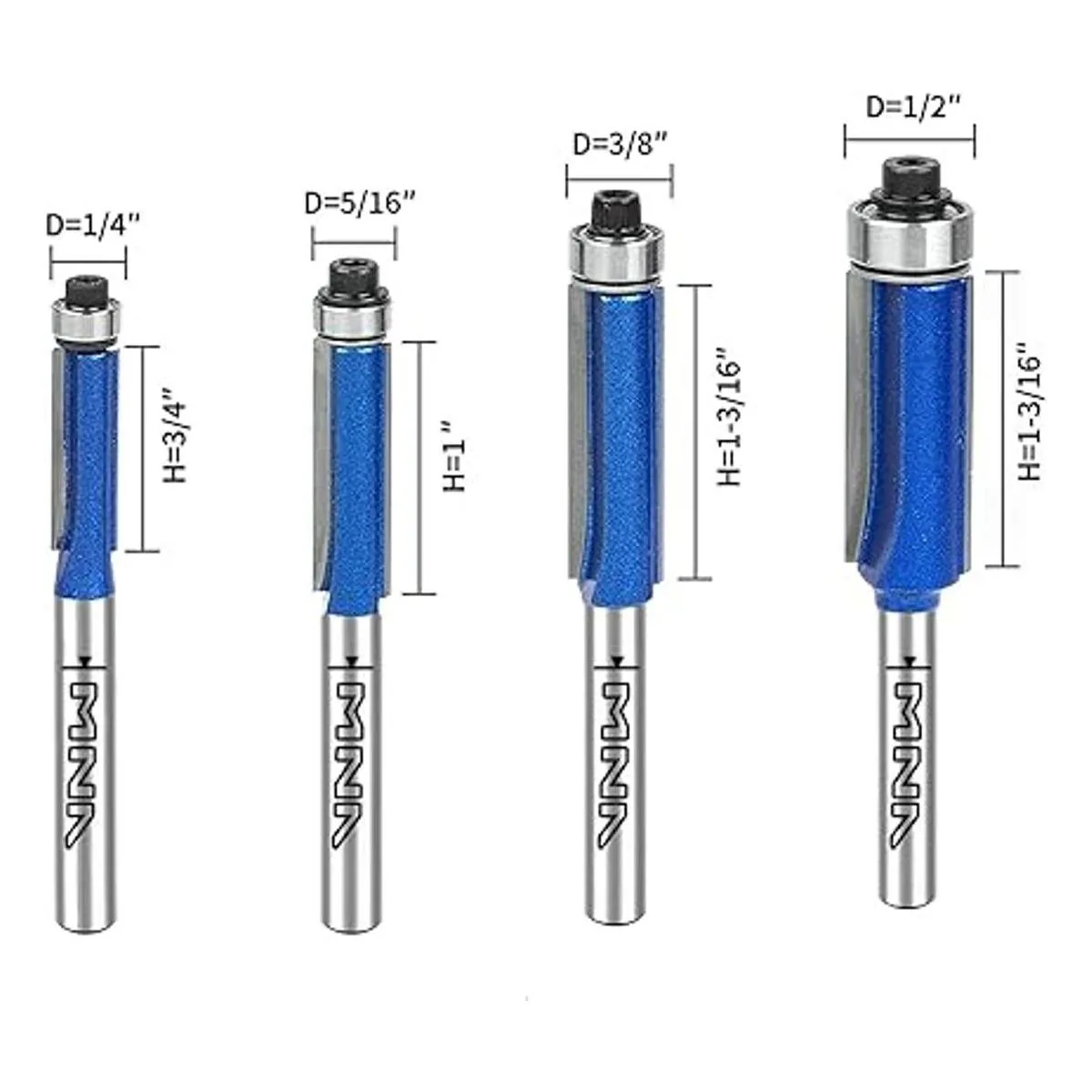 MNA Juego de 4 puntas de corte a ras de rodamientos superiores, juego de brocas rectas de corte a ras de 14 pulgadas. Corte a alturas de 14 pulgadas, 516 pulgadas, 38 pulgadas, 12 pulgadas. Ideal para recortar bordes de estante, etc. envío de rodamiento