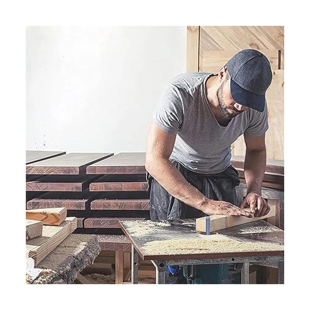 Apto para todo tipo de material de madera, como MDF, madera dura, madera blanda y tableros de partículas.