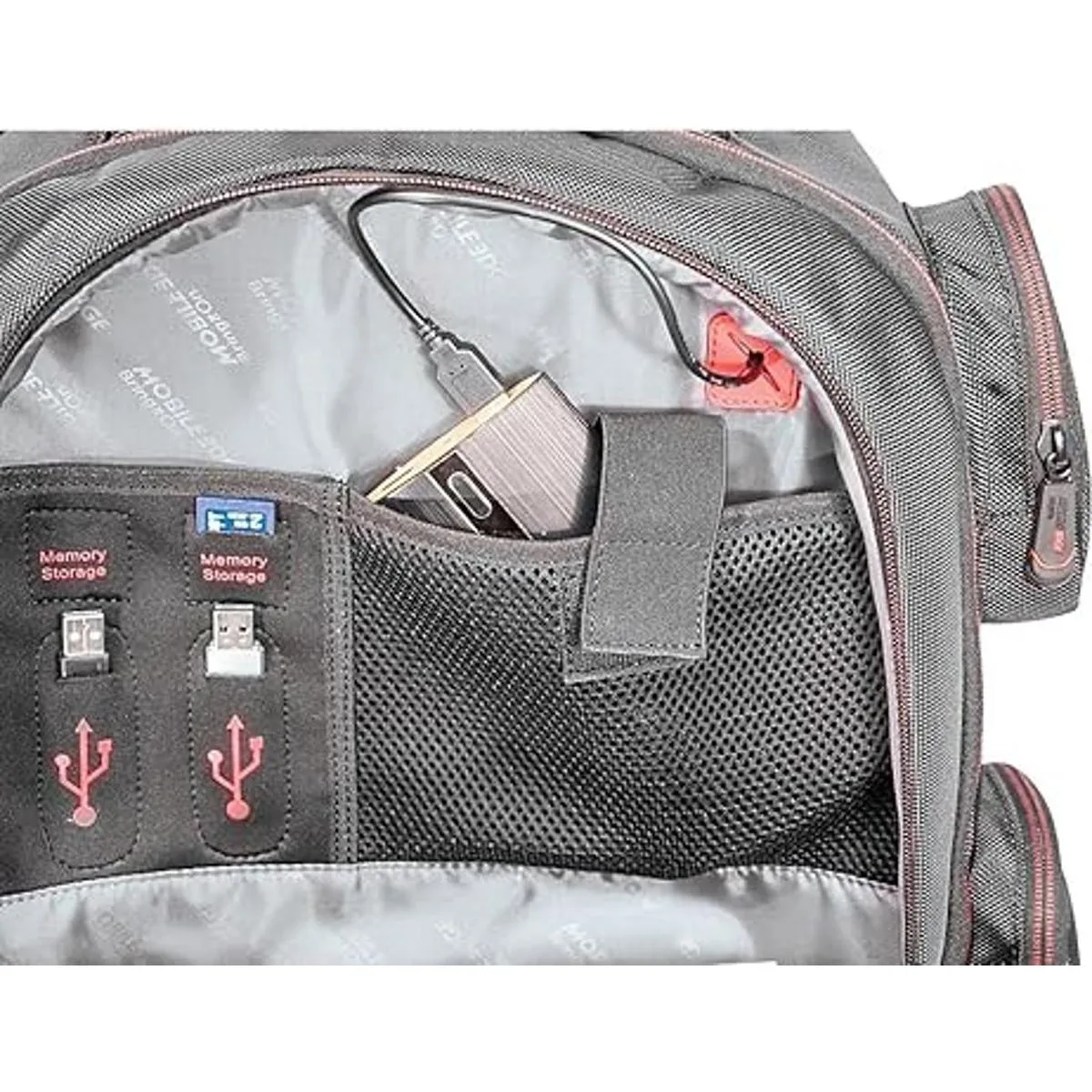 Mobile Edge Core Gaming Laptop Mochila, panel frontal moldeado, 17 18 pulgadas, puerto de carga rápida USB 3.0 externo y cable de carga incorporado ScanFast TSA Checkpoint amistoso negro con ribete rojo MECGBP1