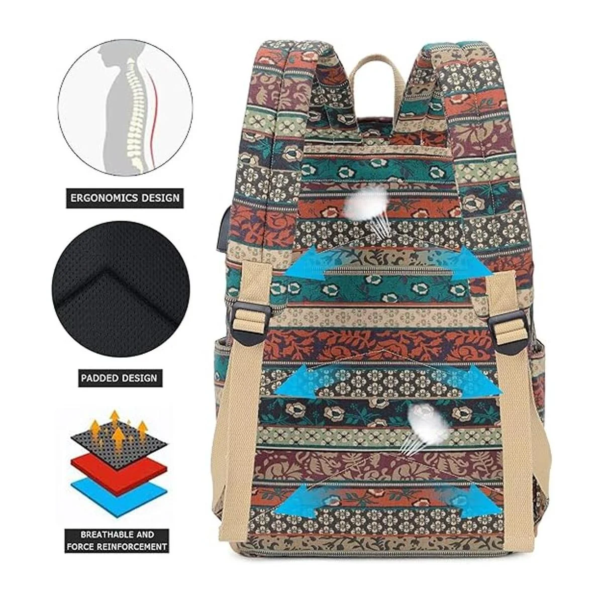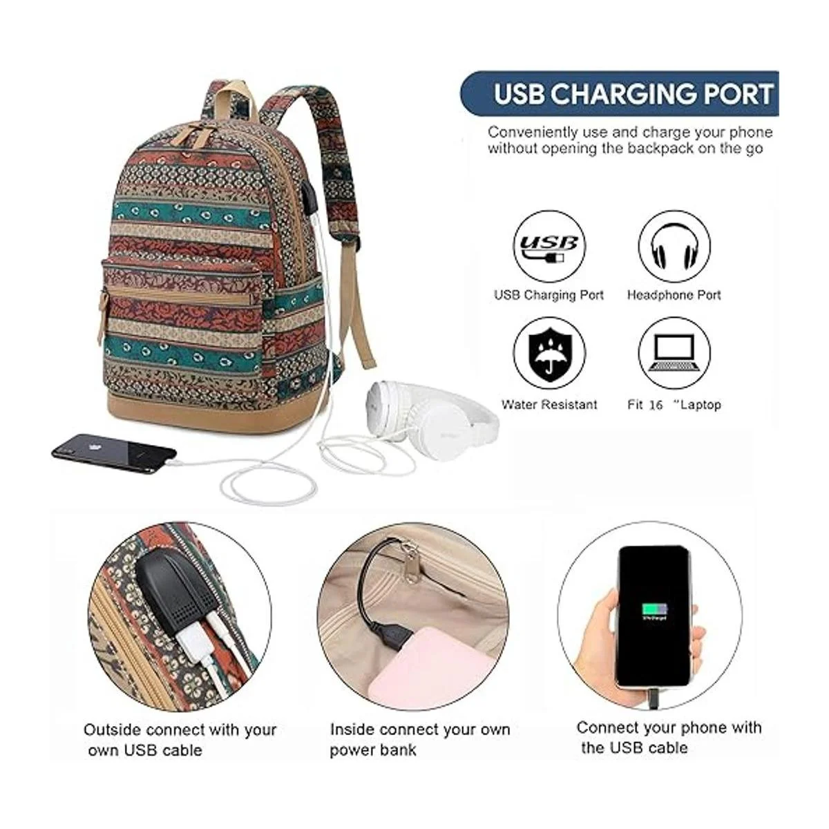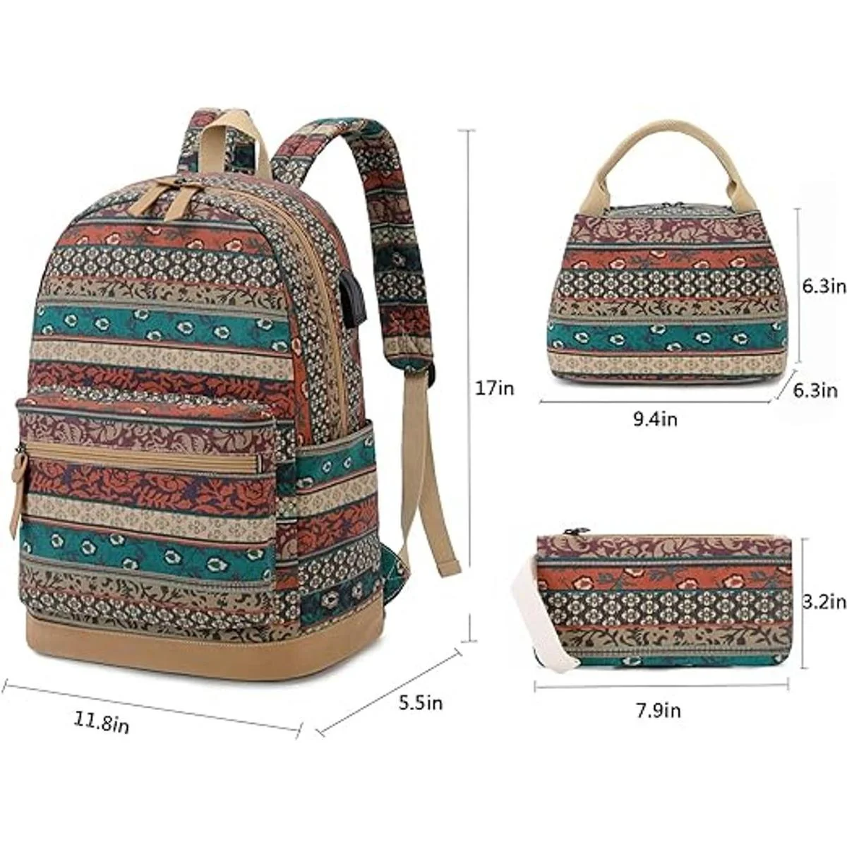 Natayoo Juego de mochila bohemia USB ligera 3 en 1