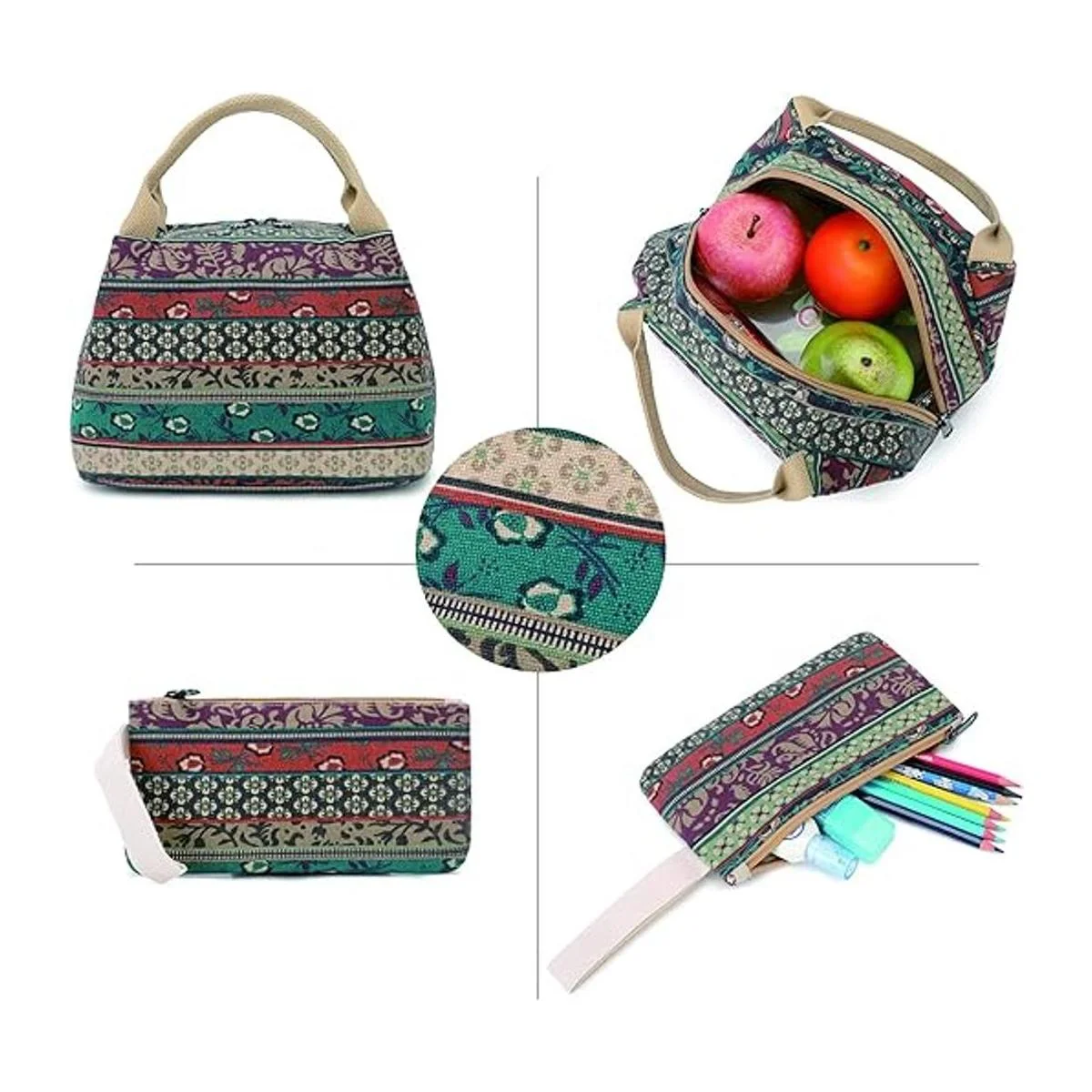 Gran capacidad: computadora de hasta 15.6 pulgadas en el compartimento del portátil. Un montón de bolsillos para guardar laptop, teléfono celular, iPad, banco de energía, bolígrafo, llaves, cartera, libros, aperitivos, ropa, paraguas, botellas de agua y mucho más. La lonchera está diseñada con papel de aluminio aislado internamente para mantener los alimentos y las bebidas calientes y frías durante horas. La bolsa de lápices puede poner bolígrafos, llaves, también se puede utilizar como una cartera o kit de lápices de acuerdo a tus deseos.