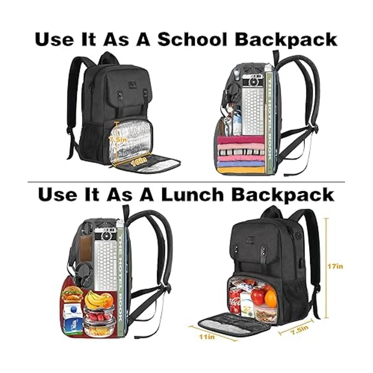 Mochila de almuerzo para mujer, mochila térmica para computadora portátil con puerto de carga USB, bolsa impermeable para computadora de viaje, lonchera escolar, mochila universitaria, regalo para hombres, se adapta a cuadernos de 15.6 pulgadas