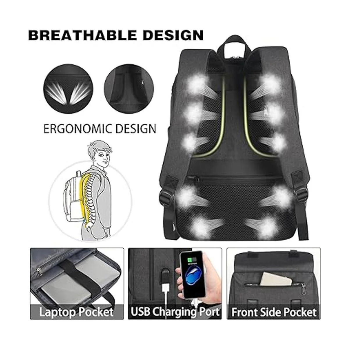 Diseño fácil de transportar: un bolsillo antirrobo oculto en la parte posterior de la mochila de viaje para portátil para tus objetos de valor. Cargador USB externo integrado, cable de carga integrado, esta bolsa impermeable para libros hace que sea más conveniente cargar tu teléfono mientras caminas. Adecuado para viajes aéreos internacionales y viajes de día, como regalo para hombres y mujeres.