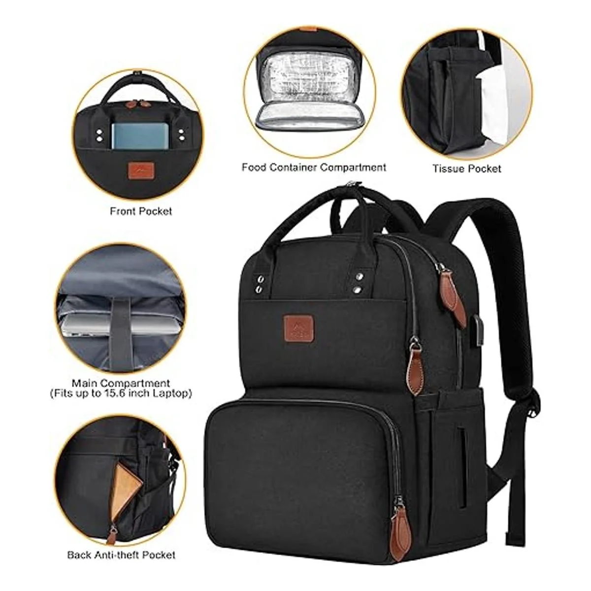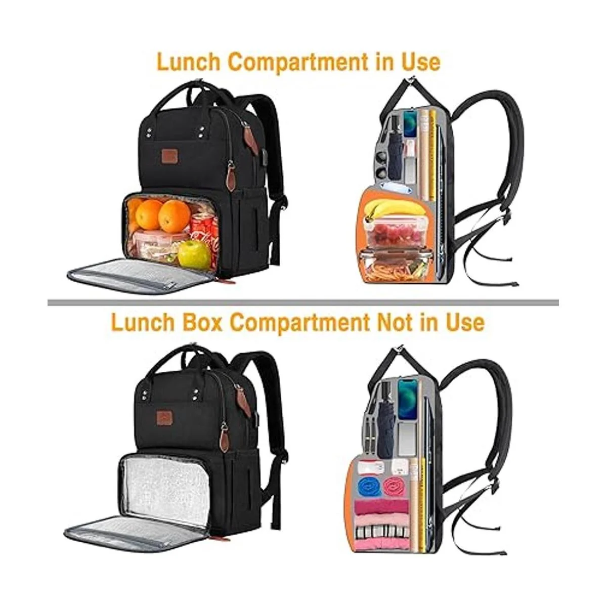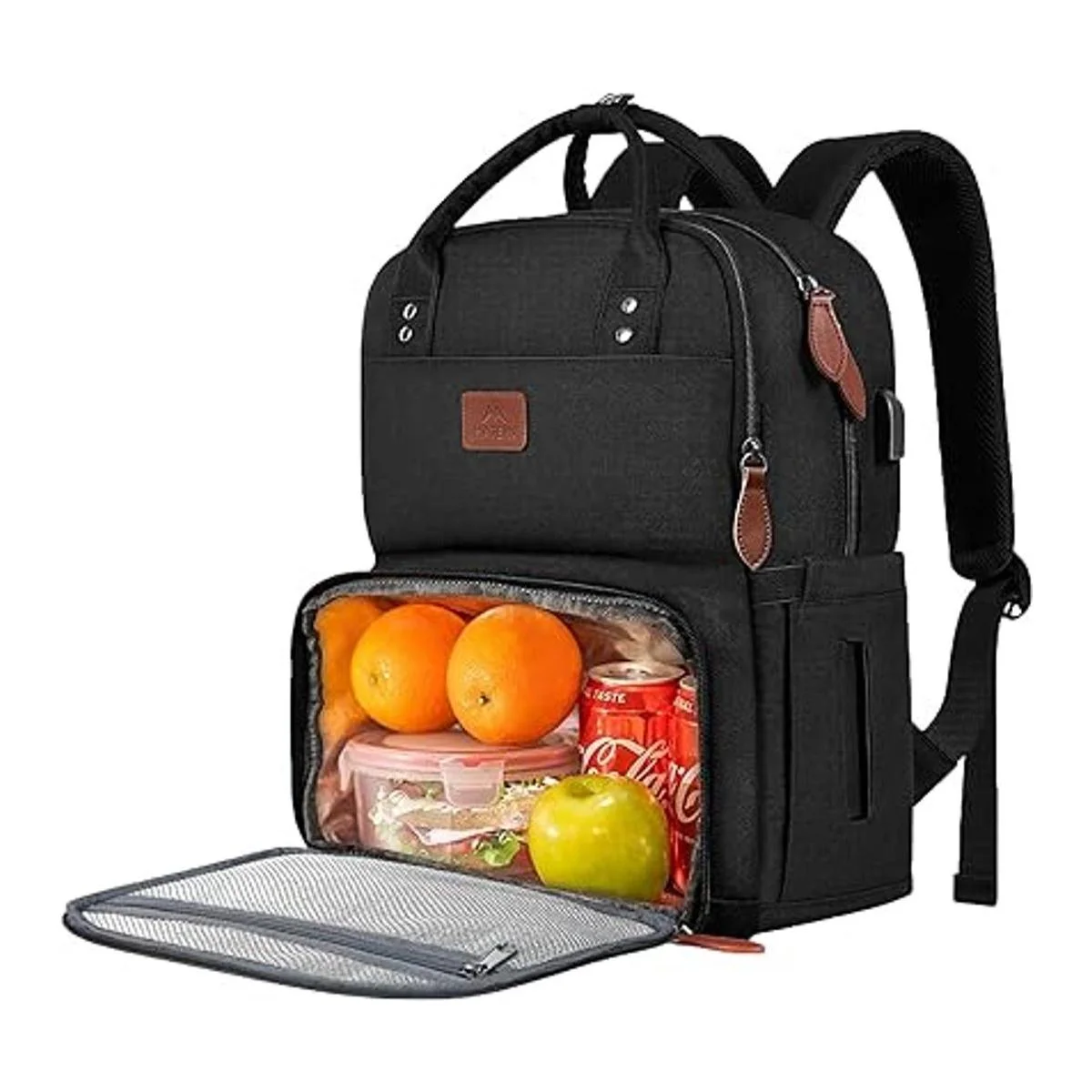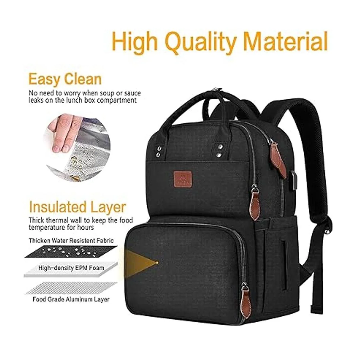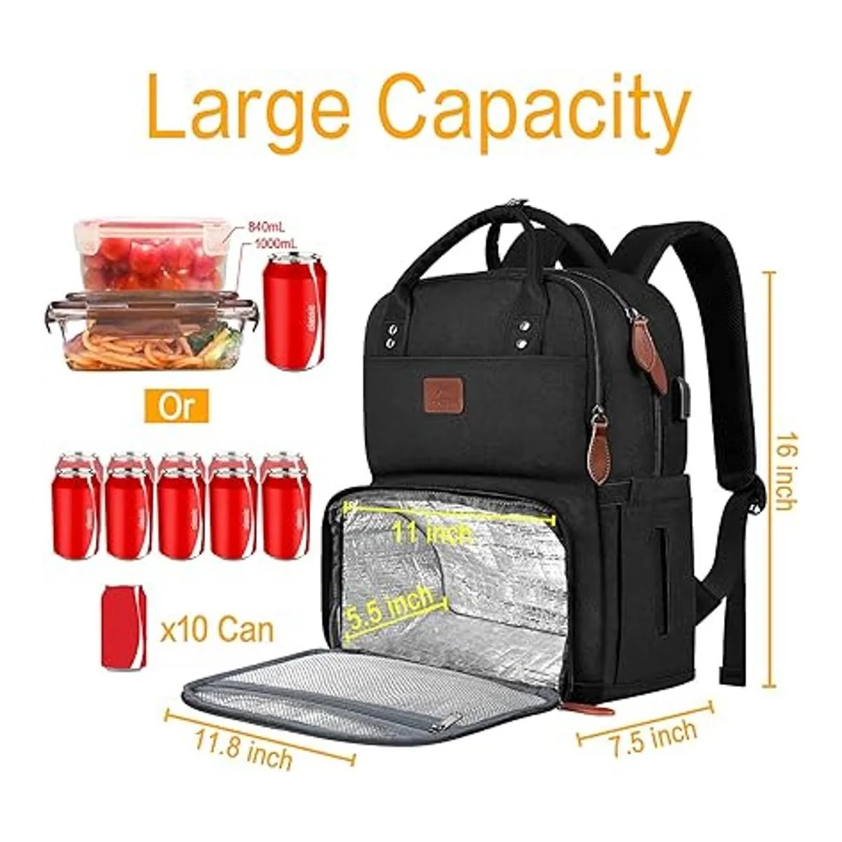 Mochila de almuerzo para mujeres, mochilas térmicas aisladas con puerto USB, 15.6 pulgadas, bolsa para universidad, escuela, portátil, bolsa de libros reutilizable e impermeable, bolsa de comida para el trabajo, playa, camping, picnic senderismo
