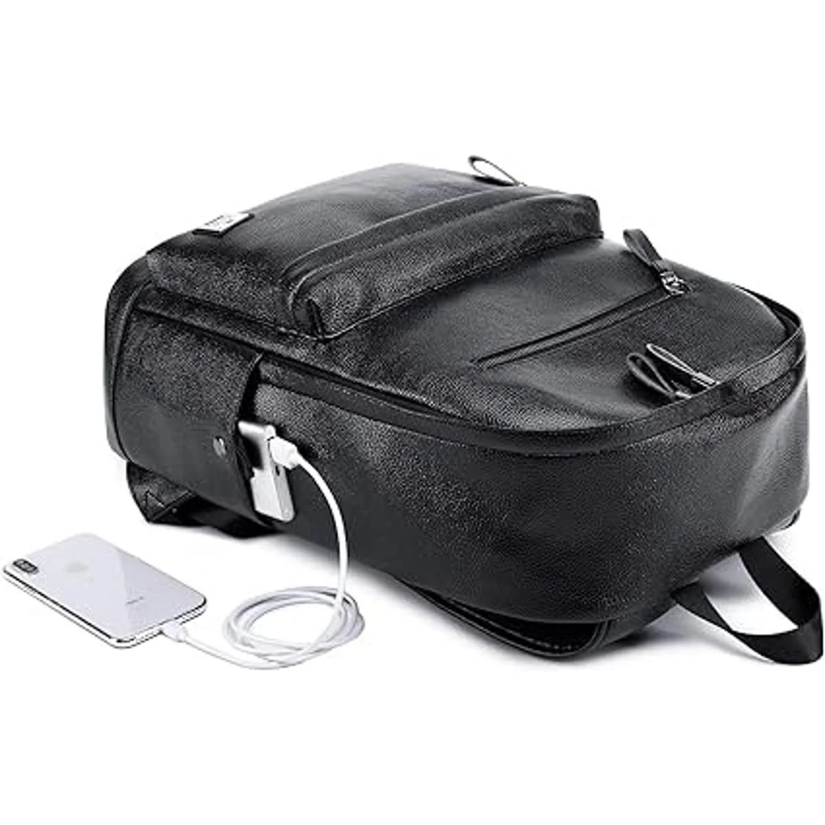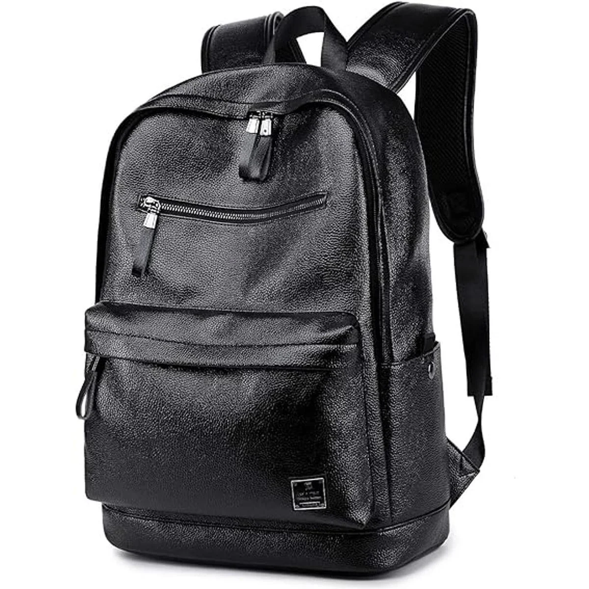 Mochila de cuero negro para computadora portátil para hombres y mujeres, mochila escolar universitaria para estudiantes, mochila de computadora para el trabajo, se adapta a laptop de 15.6 pulgadas, Negro Leather Black, Mochilas tipo mochila