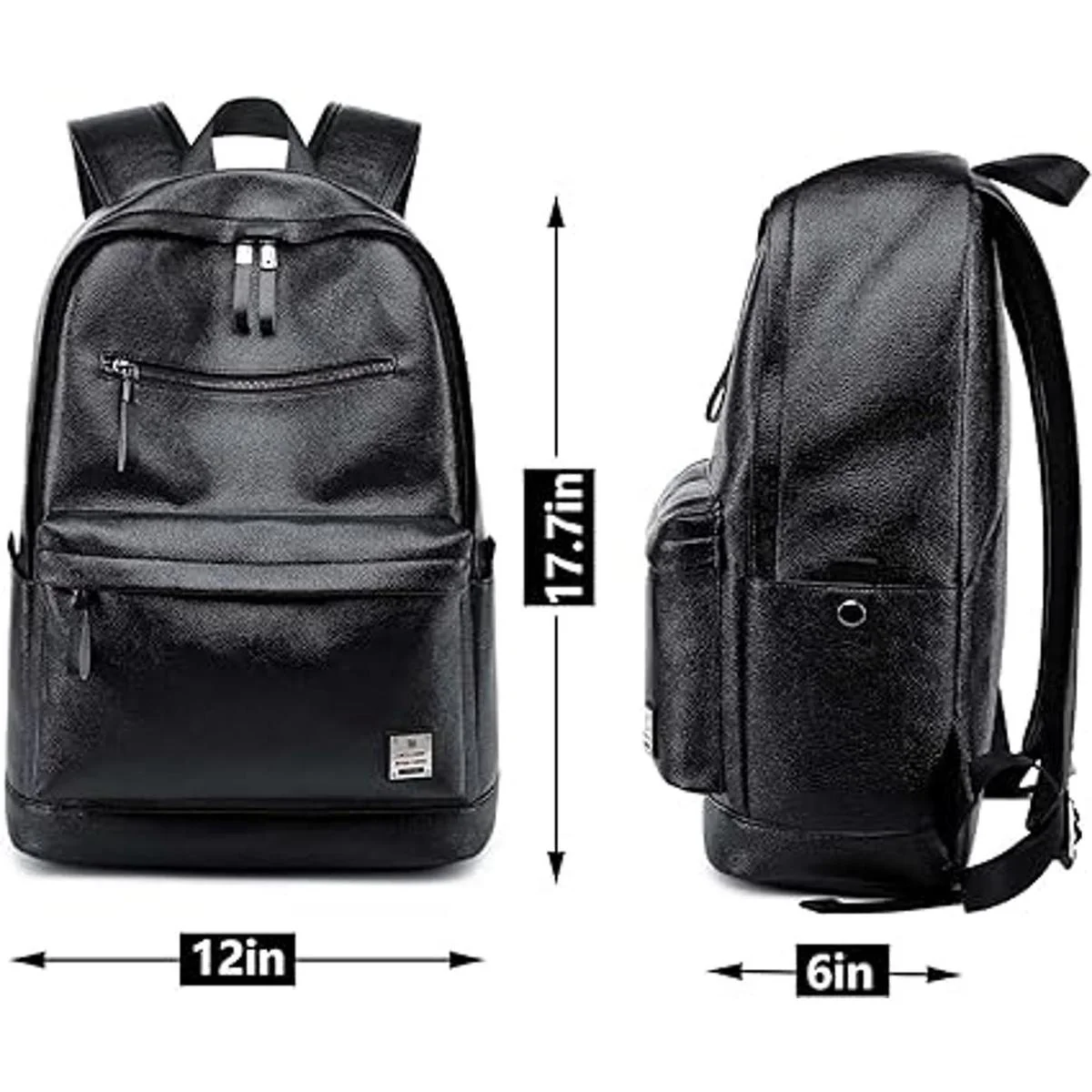 Mochila de piel sintética para portátil con muchos bolsillos: 1 espacioso bolsillo principal doble con cremallera con pequeñas bolsas interiores, 2 bolsillos delanteros con cremallera, 2 soportes para botellas de agua en ambos lados, 1 bolsillo interior con cremallera, 1 compartimento acolchado para laptop se adapta a un portátil de hasta 15.6 pulgadas. Muchos compartimentos en el interior para almacenar y organizar de forma segura tu libro de texto, portátil, ropa, computadora, Kindle, iPad mini, banco de energía, cámara, paraguas, etc