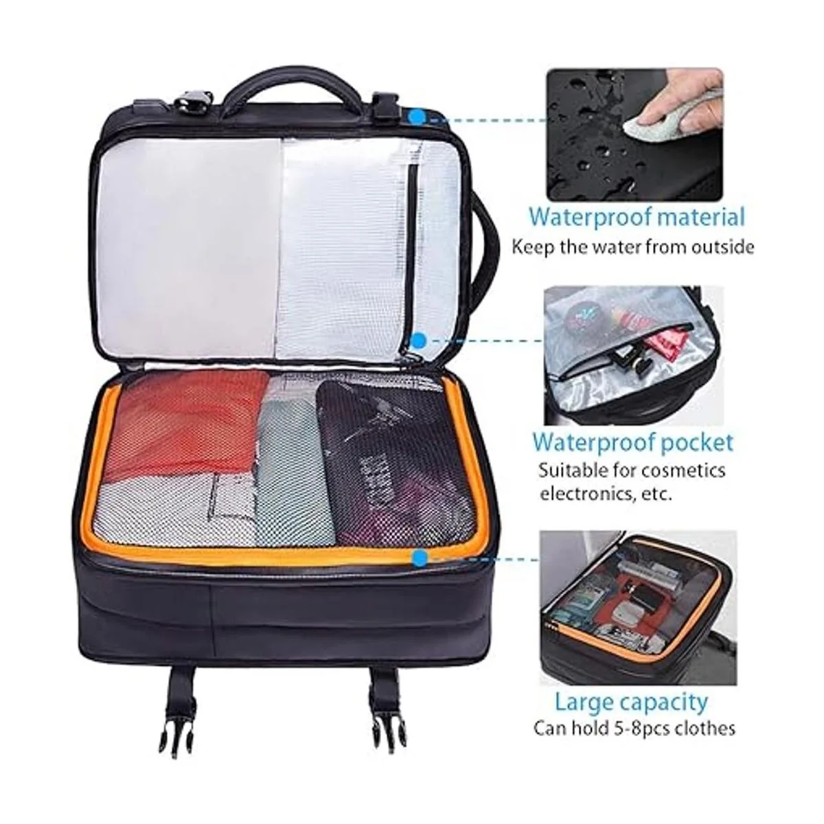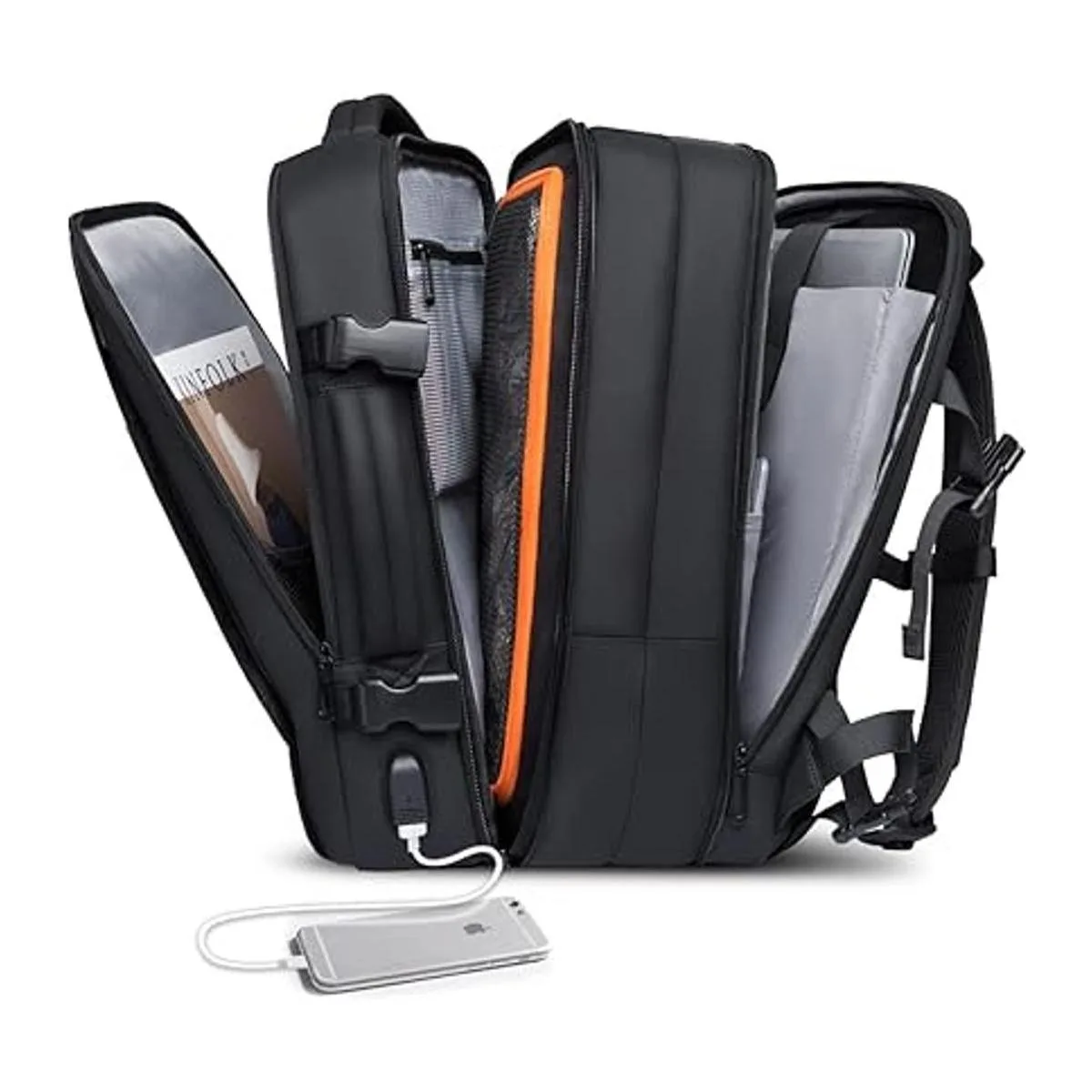 Mochila expandible de viaje: la mochila de viaje con flequillo tiene el diseño de expansión, el almacenamiento normal es de 22 L. Al abrir el exterior, se puede expandir a 45 L, lo que puede satisfacer tus viajes de negocios de 5 a 7.