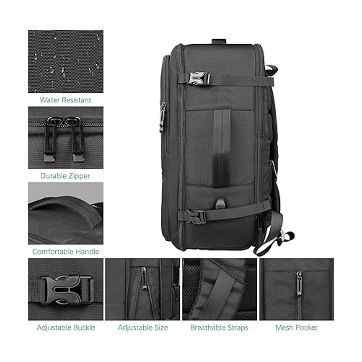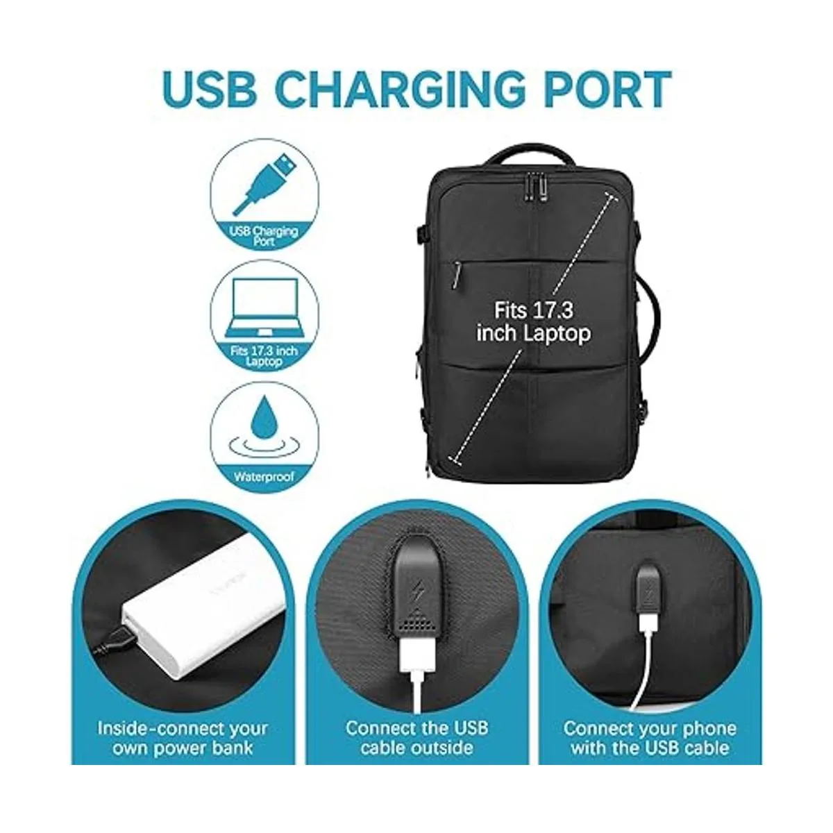 Mochila de viaje de 40 L, mochila de transporte aprobada por vuelo, mochila extra grande para laptop de 17 pulgadas, mochilas TSA Business Wok con puerto de carga USB, se adapta a laptops de 17 pulgadas para hombres y mujeres, color negro