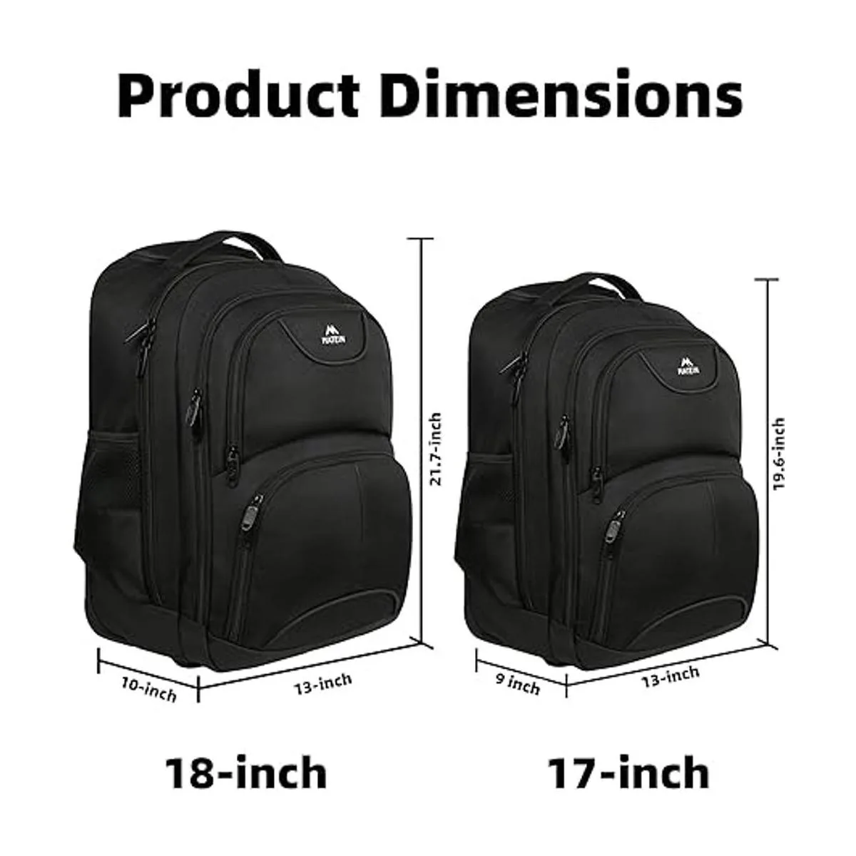 COMPARTMENT: School rolling backpack builtin separate fullypadded laptop pocket hold Laptops up to 18 inch as well as 17 inch Notebook; 45L Large Main Compartment roomy hold school books or clothing for an overnight trip; Second zippered file compartment to organize bulky books and files; Organizer Compartment with many pockets make your items organized and easier to find; Mesh water bottle pockets at sides; A magic tape pocket at the back is convenient to carry a small towel