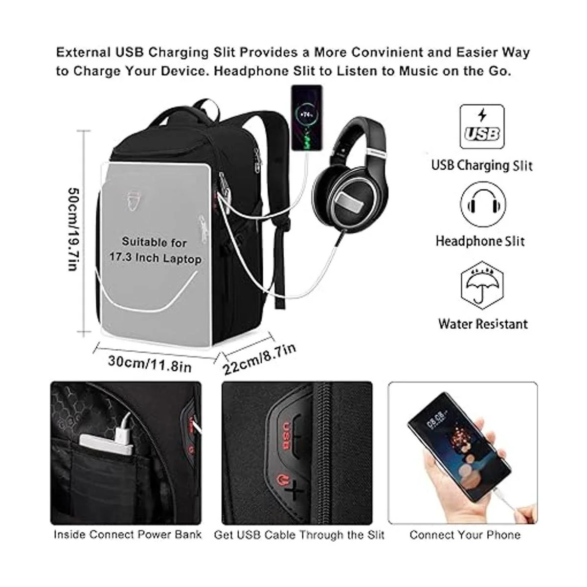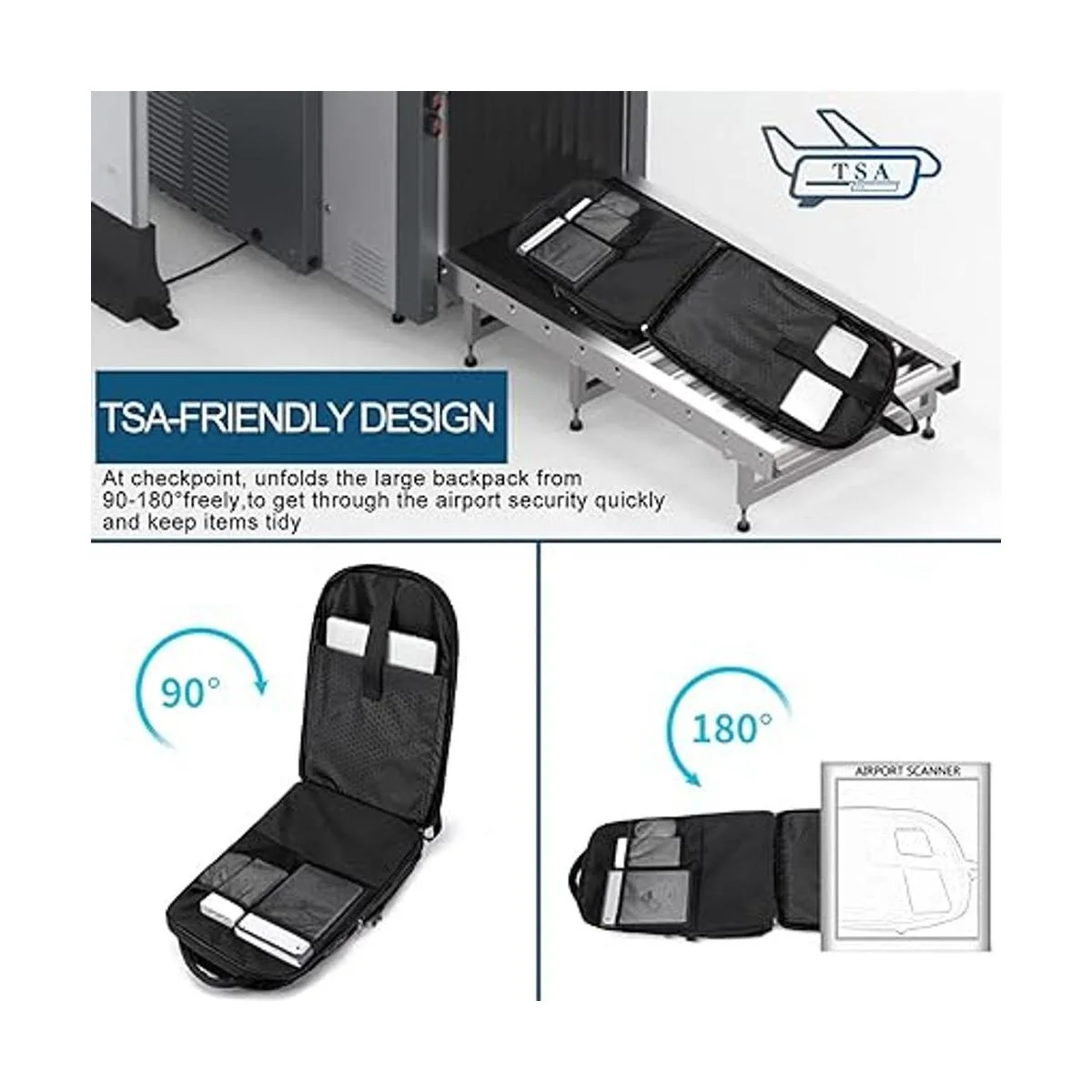 Mochila de viaje para laptop, mochila grande antirrobo para hombres con ranura USB, mochila de viaje para mujeres, aprobada por la TSA, mochila de computadora de 17 pulgadas para negocios, oficina, trabajo, escuela, color negro