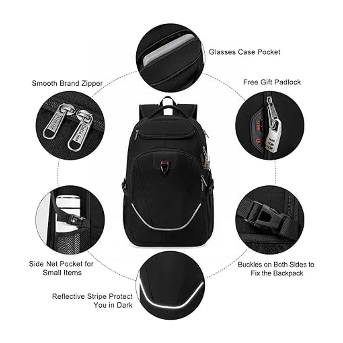 Seguro y cómodo: cremalleras con cerradura con un cierre de combinación, bolsillo antirrobo oculto en la parte posterior para objetos de valor. Correas de hombro anchas y cómodas acolchadas con esponja que ayudan a aliviar el estrés en tu hombro. Abrocha las bandas en las correas de hombro para equilibrar el peso cuando la mochila grande y ligera está pesada. Gran opción como mochila universitaria para niños, mochila para niñas para la escuela, mochila para laptop para mujeres, mochila para laptop para hombres, mochila de trabajo para mujeres y hombres