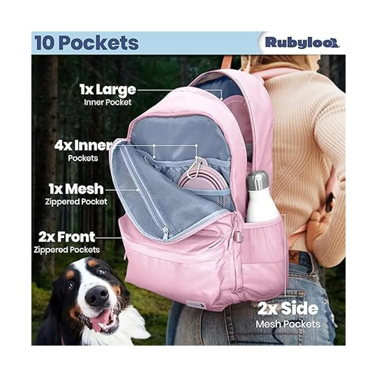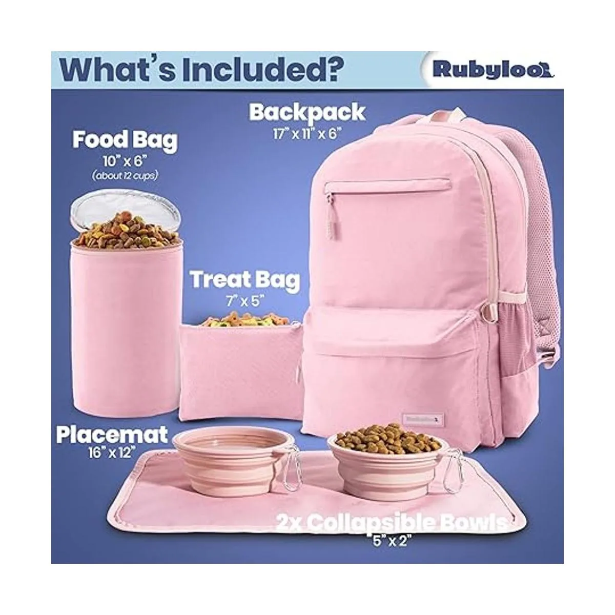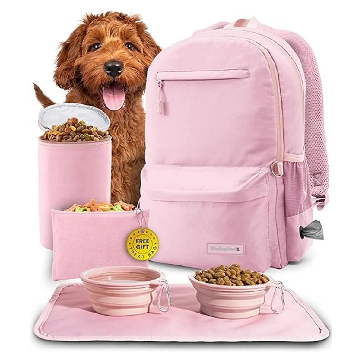 La mochila definitiva para suministros para perros. Estás listo para viajar con manos libres con nuestra mochila para perros para suministros Nuestro juego de mochila para perros de 6 piezas cuenta con 2 compartimentos grandes con cremallera, 2 cuencos plegables para perros con mosquetones, recipiente de viaje aislado para alimentos para perros con forro a prueba de fugas, mantel individual con forro impermeable y bolsa de golosinas adicional. Un sustituto sostenible de las bolsas de plástico